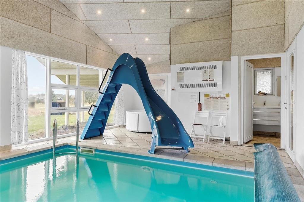 Am einen Ende des Hauses befindet sich der Poolbereich, in dem das 15 m² große Becken mit Rutsche Kinder jeden Alters begeistern wird. In der Ecke steht ein Whirlpool, in dem man sich nach einem langen Tag im Freien oder am Strand entspannen kann. Im angrenzenden Badezimmer gibt es Zugang zu einer Sauna, in der man sich aufwärmen kann, wenn das Wasser zu kalt wird - L 4,5 x B 3,4 x T 1,4 m.