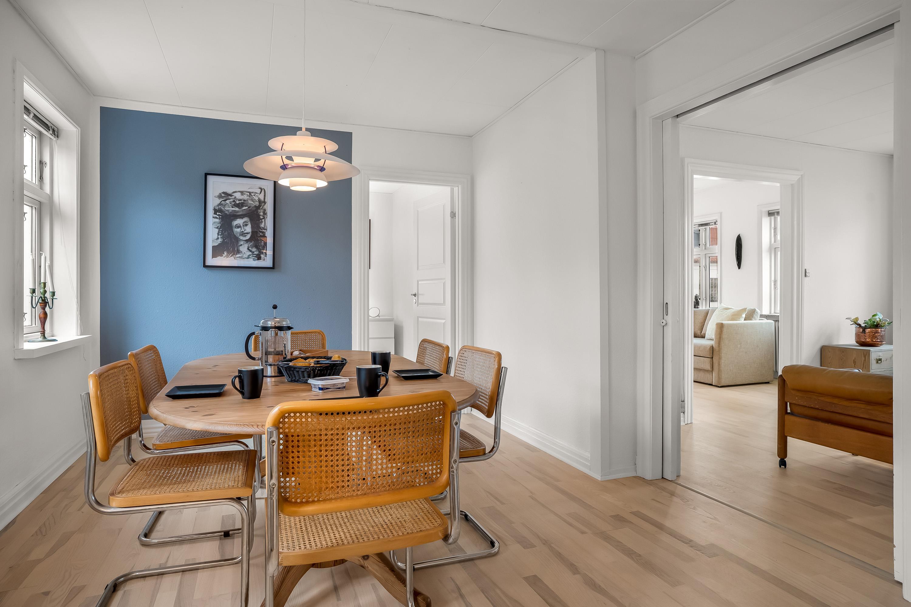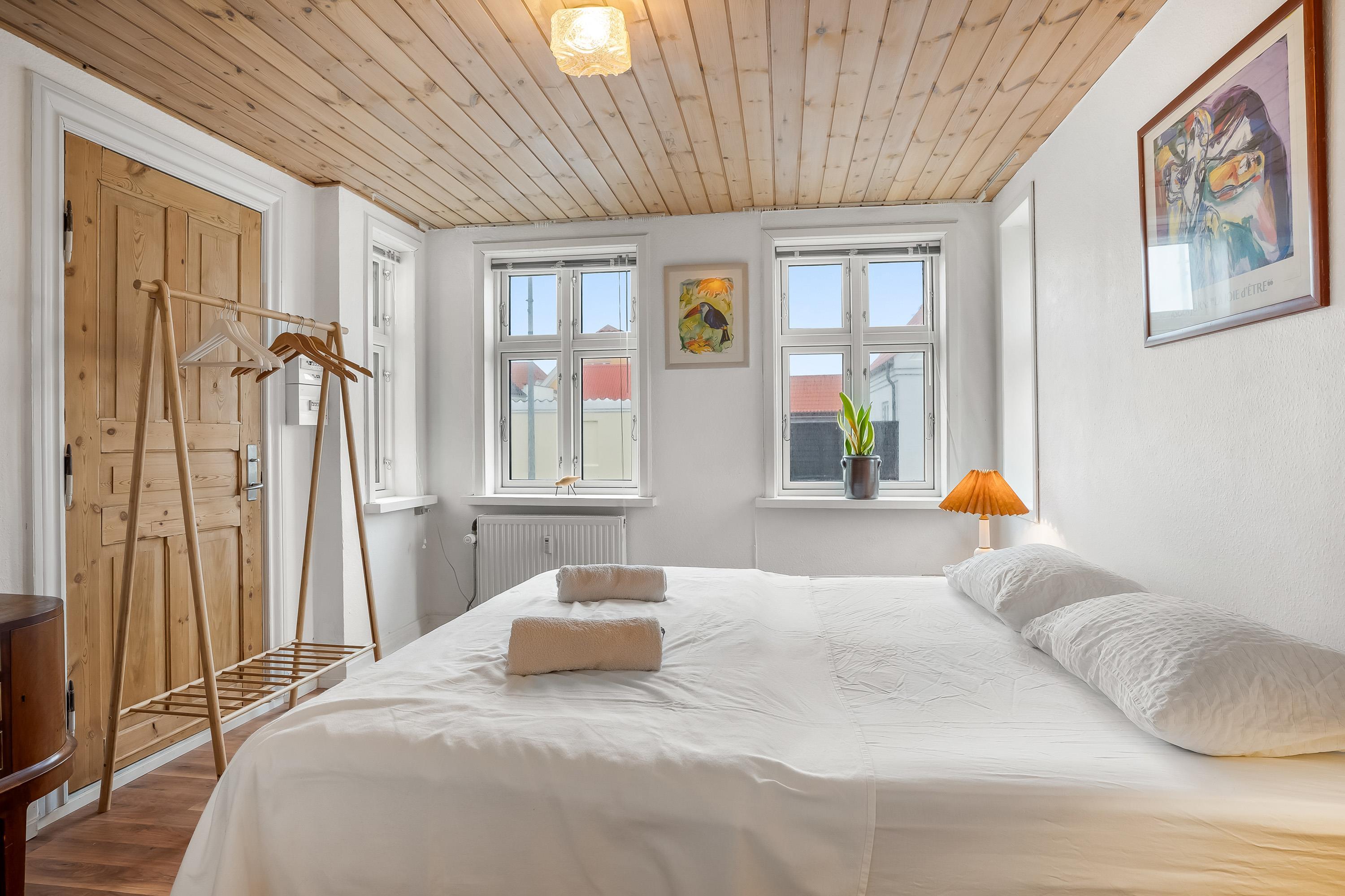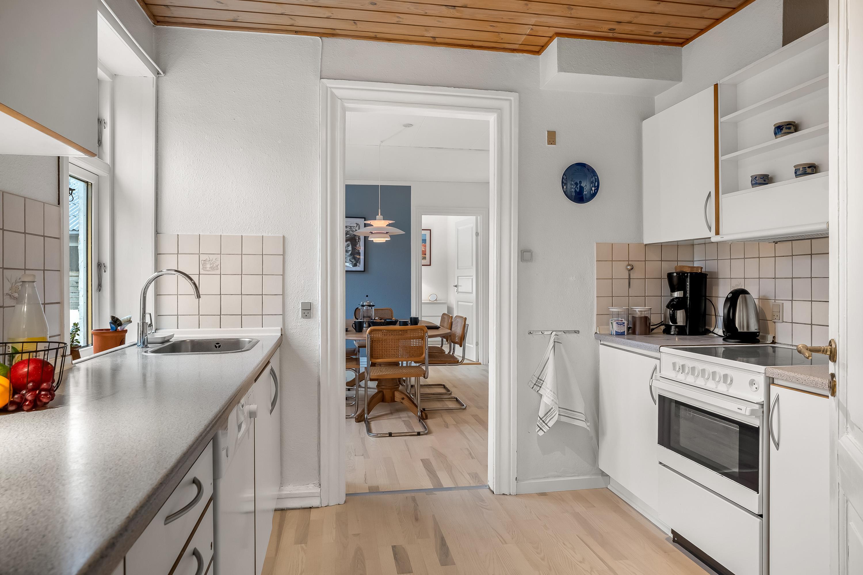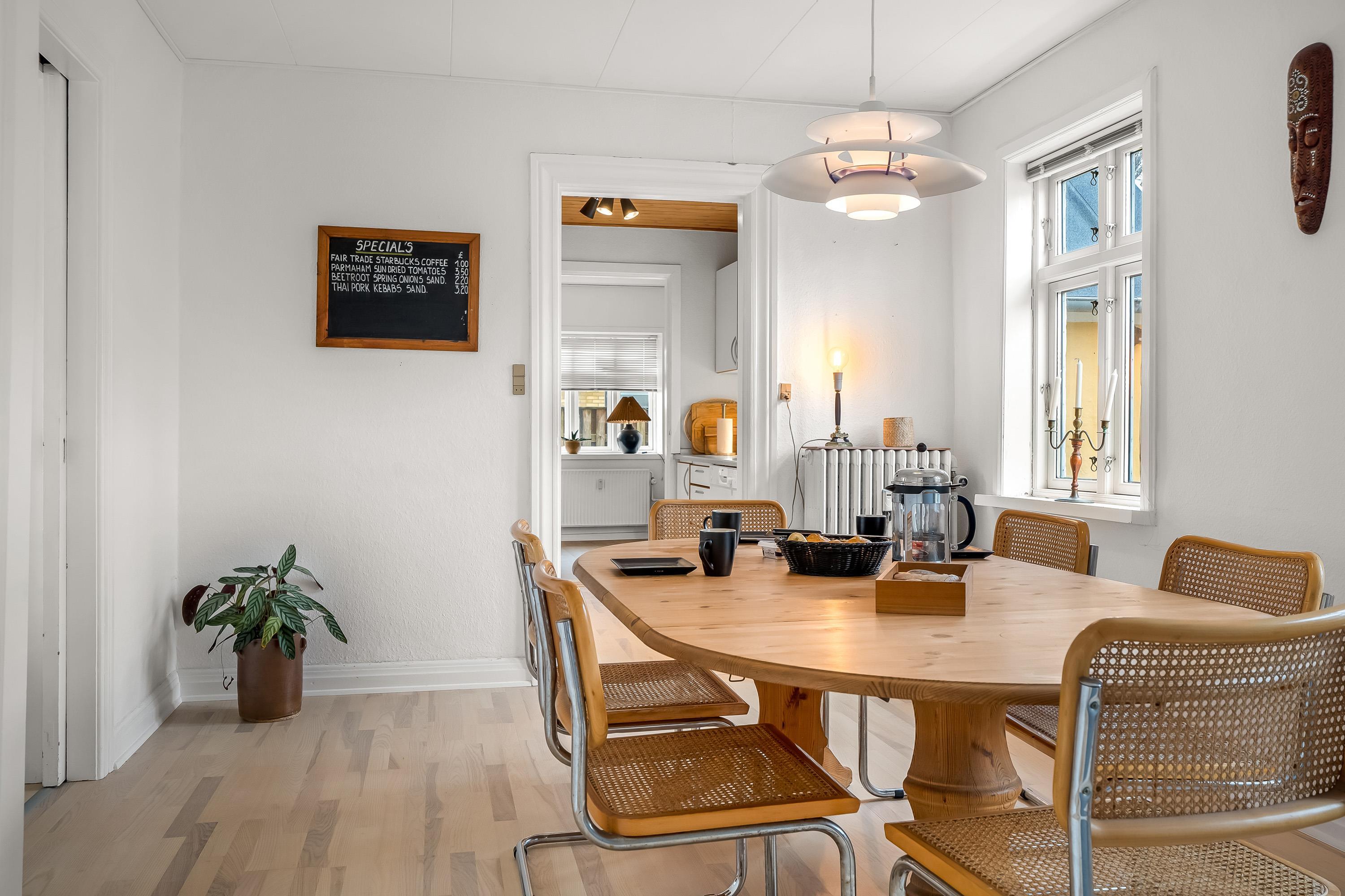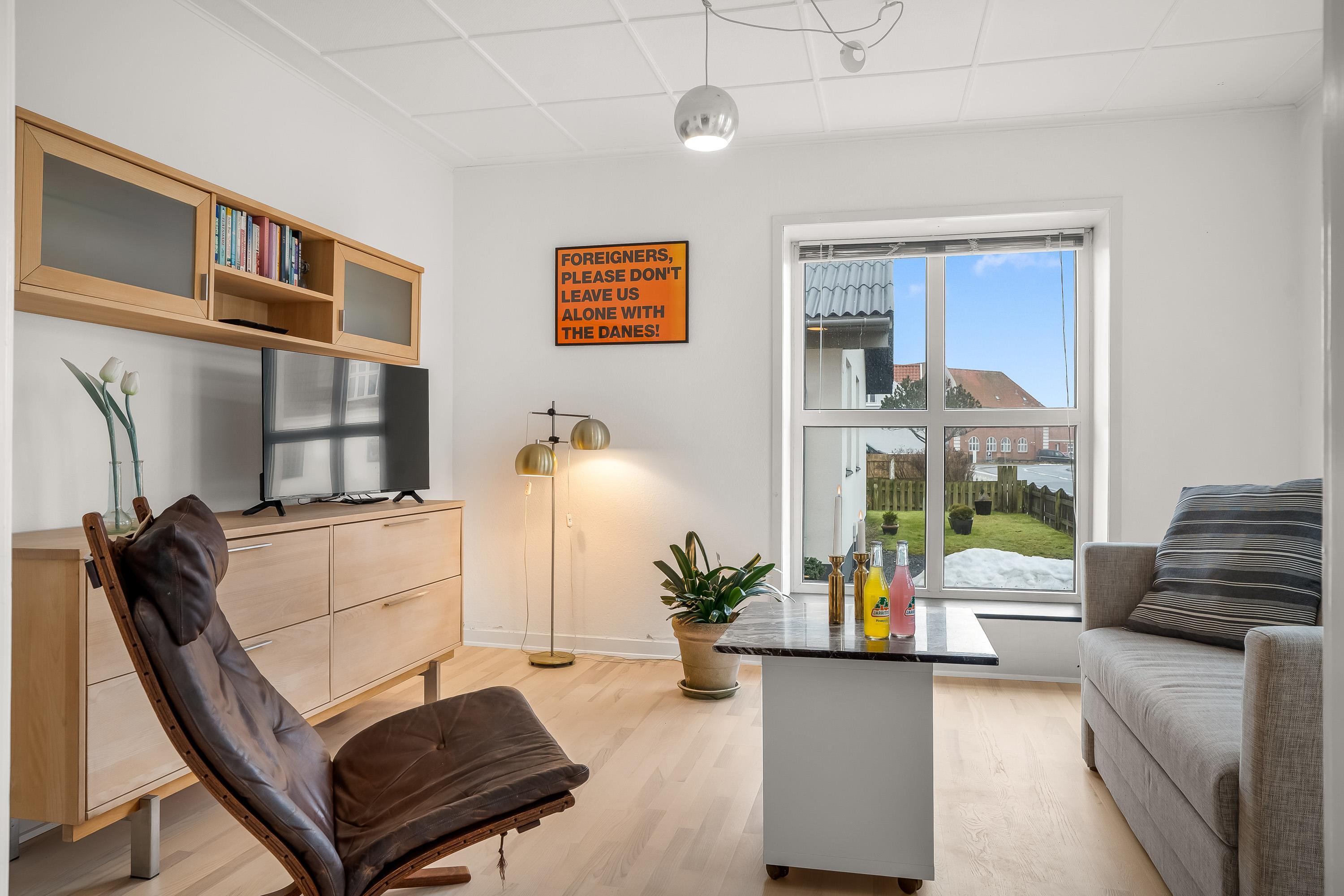 Der große Garten grenzt an ein grünes Gebiet bei der Løkken Schule, sodass sich hinter dem Haus keine Bebauung befindet. Der Garten und die große Terrasse werden mit der Wohnung im ersten Stock geteilt und schaffen eine ruhige Atmosphäre, obwohl Sie zentral und nahe der Nordsee wohnen.
