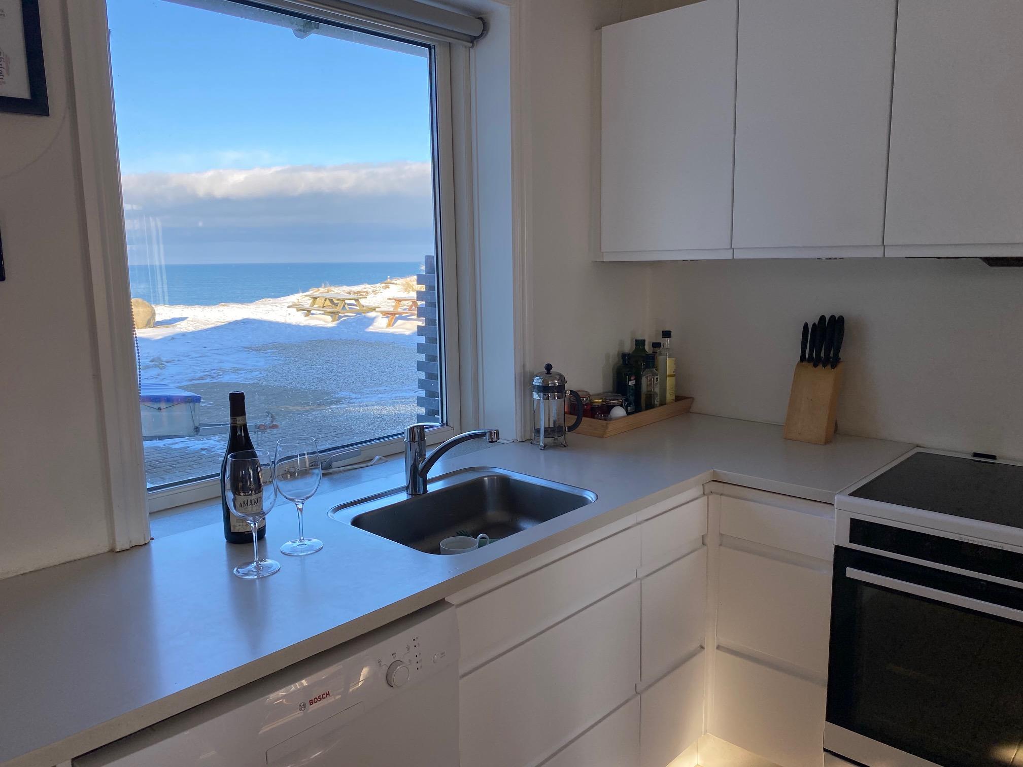 The house has neighbors such as a grocery store and grill bar, but nature forms a beautiful backdrop with views of the sea. There are several terraces where you can find shelter from the westerly wind. The area offers many hiking and walking opportunities, and Rubjerg Knude Lighthouse is nearby. Løkken and Lønstrup are only a ten-minute drive away, offering additional attractions, shops, and restaurants.