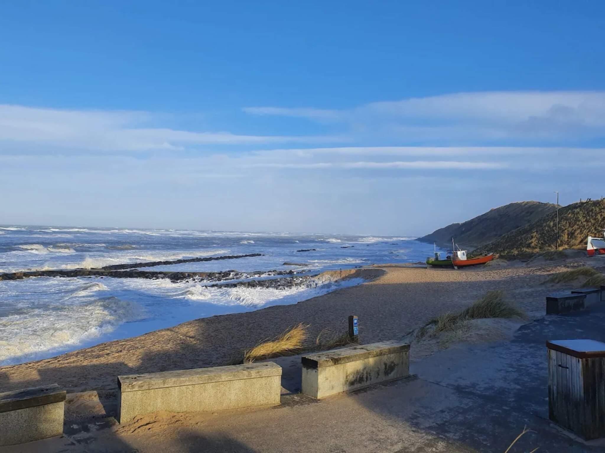 Dieses Ferienhaus mit Schwimmbecken und Whirlpool im Poolbereich und angrenzendem Bad mit Zugang zu einer Sauna liegt im kleinen, gemütlichen Fischerdorf Lønstrup, in erhöht auf einem hügeligen Naturgrundstück. Es bietet herrliche Panoramaaussicht zur Wanderdüne Rubjerg Knude und in die umliegende, reizvolle Küstenlandschaft.