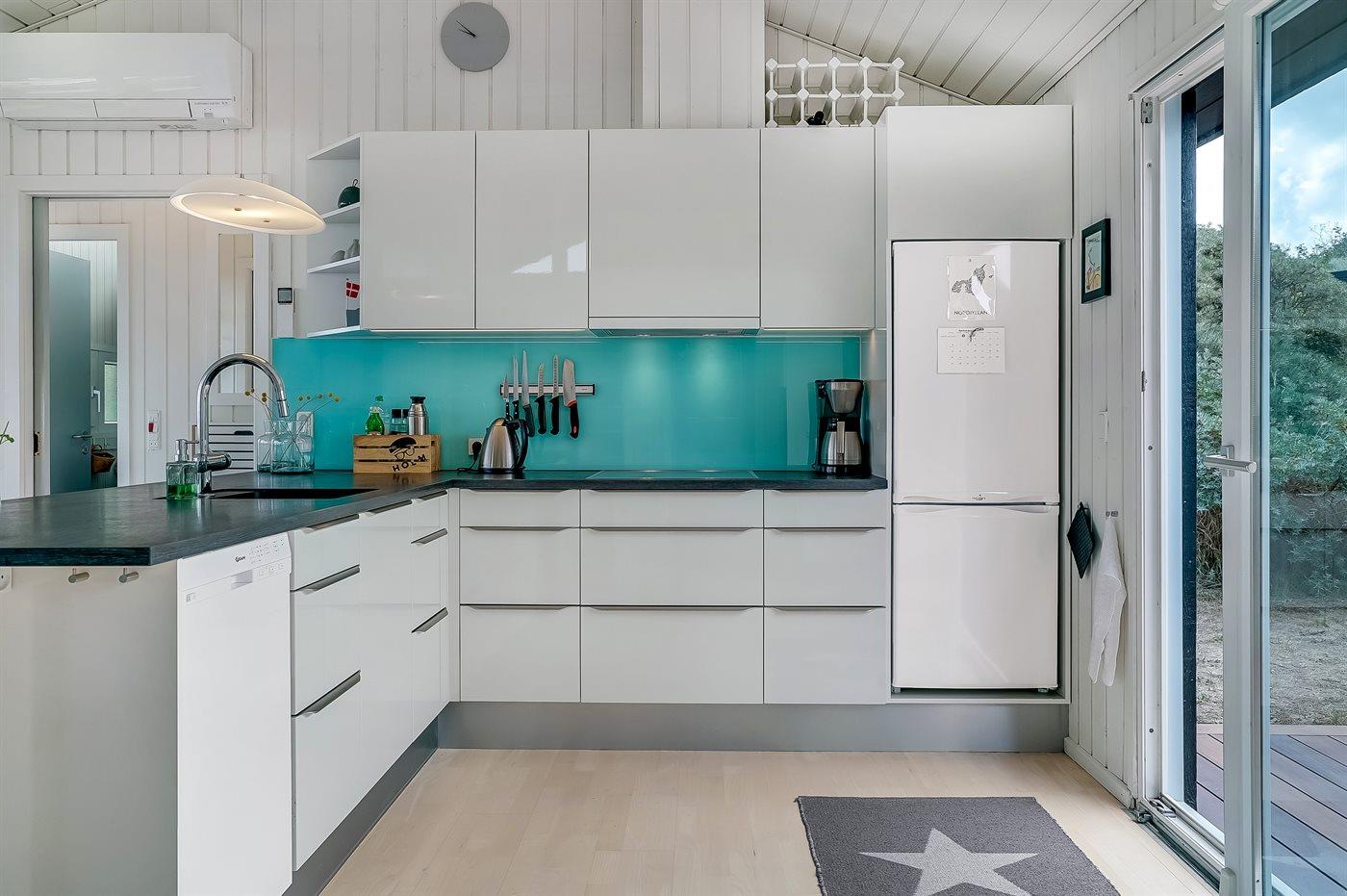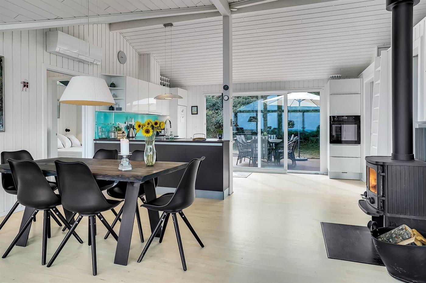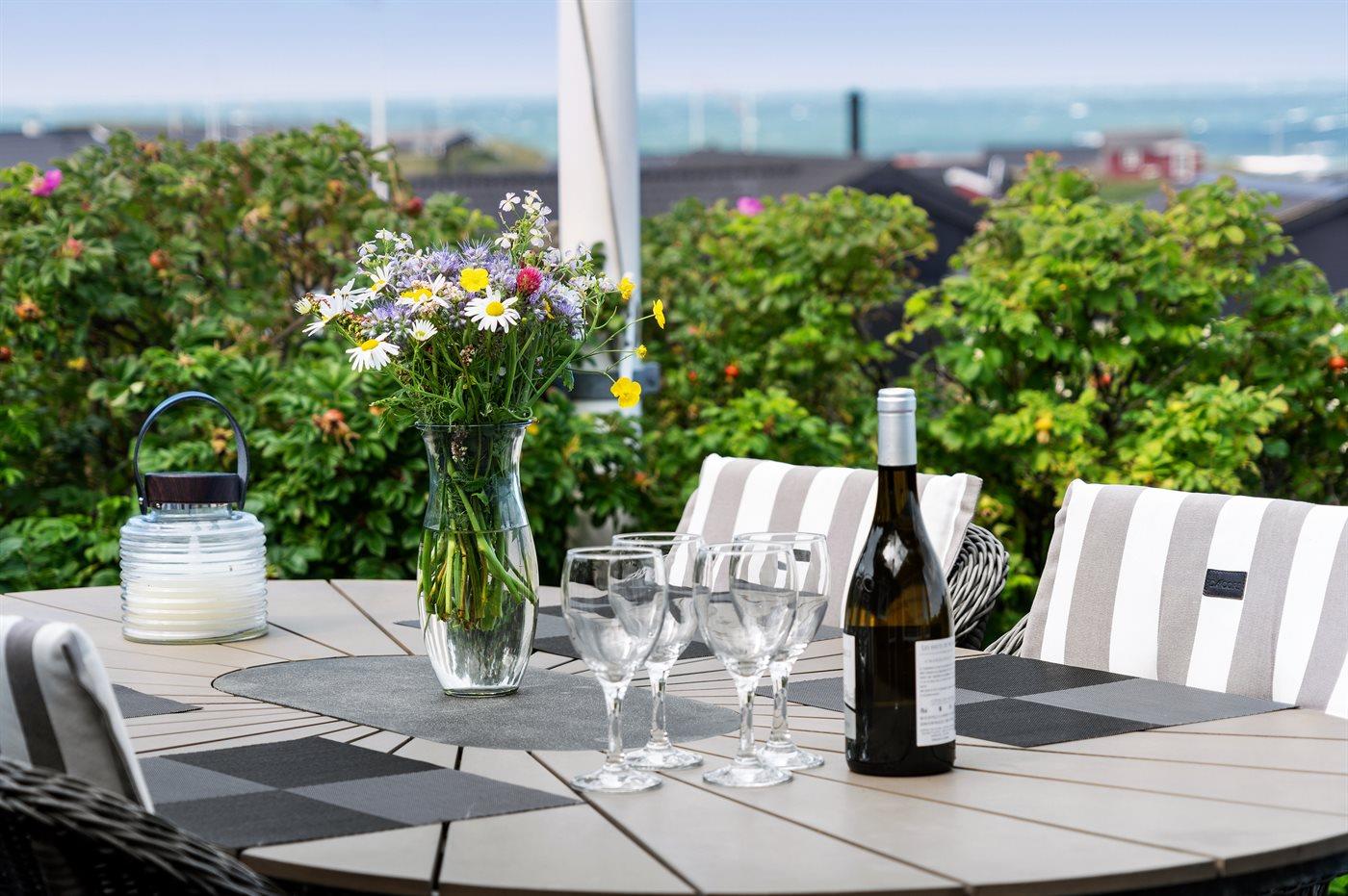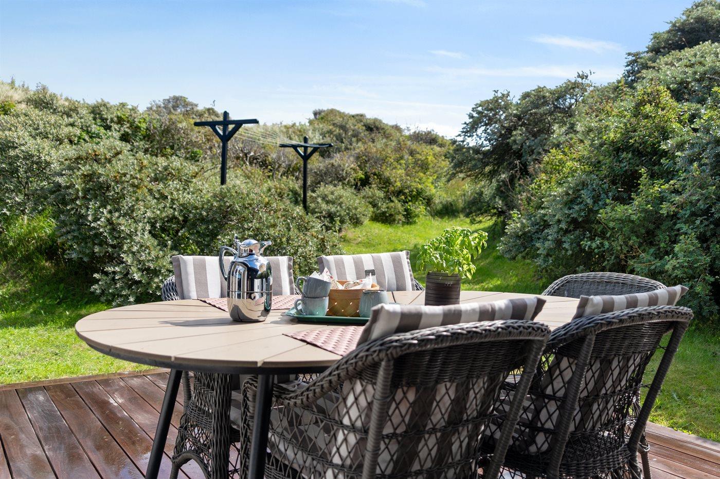 Sommerhaus mit phantastischem 180 Grad Panoramablick zur Meerseite im populären Lönstrup. Von diesem Ferienhaus aus können Sie die herrliche Szenerie direkt vor der Haustür bequem geniessen. Der wunderbare Meerblick ist ungestört zu geniessen, so weit das Auge reicht. Das Haus ist gemütlich und praktisch eingerichtet mit modernem und komfortablen Mobiliar und einem zur Stube hin offenen Küchenbereich.Von sowohl Küche als auch Stube kann man das glitzernde Meer sehen. Zum Haus gehört ebenfalls ein offenes Dachgeschoss, von dem auch die Aussicht genossen werden kann. Das Haus liegt auf einem kupierten Sommerhausgebiet, dicht zum Strand. Da das Haus sehr hoch oben liegt, hat man auch von der Terrasse einen wunderschönen Blick über das Meer. Von der südöstlichen Terrasse kann man das Wasser durch die grossen Panoramascheiben geniessen und sich währenddessen völlig ungestört im Garten, mit gutem Windschutz, aufhalten, sodass man auch bei leicht frischem Wind den Kaffee noch draussen geniessen kann. Hinter dem Haus geht ein kleiner Pfad mit einer Treppe zu einer privaten Aussichtsbank, von der aus man gefühlt ganz Nordjütland sehen kann.