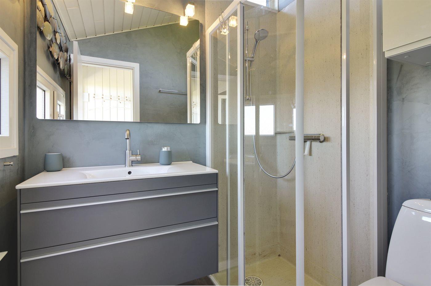 Es gibt 1 Badezimmer mit Duschnische und 1 Toilette.