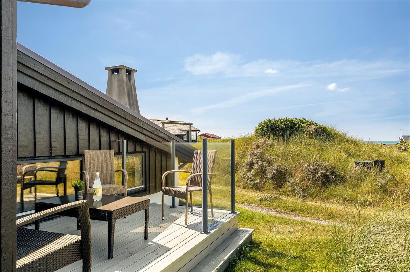 Ein fantastisch gelegenes Ferienhaus mit Meerblick sowohl vom Haus als auch vom Grundstück aus. Man findet das Haus im Ferienhausgebiet Harrerenden nördlich von Lønstrup - mit einer ungestörten Lage direkt an schöner Natur mit Möglichkeiten für lange Spaziergänge mit oder ohne Hund.