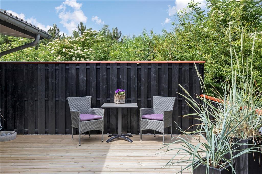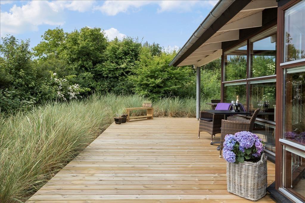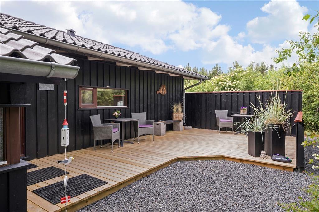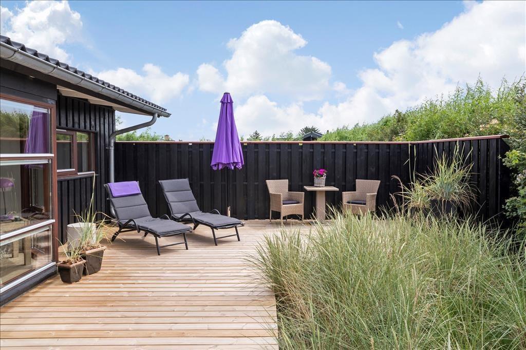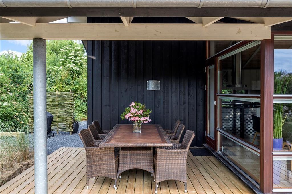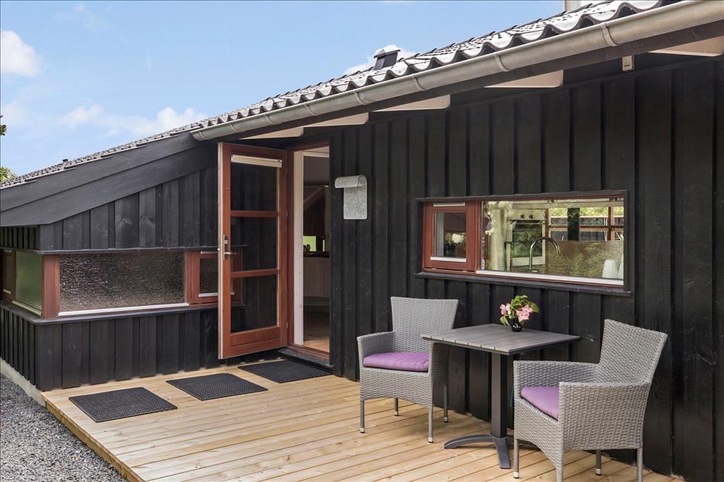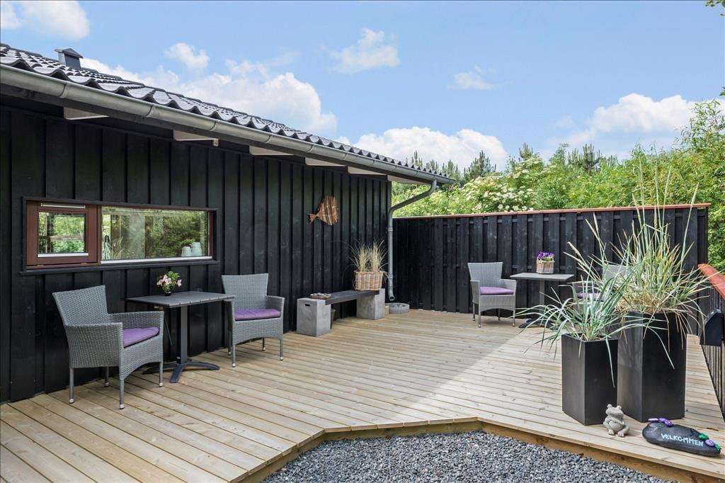 Am Ferienhaus befindet sich eine schöne und teilweise überdachte Terrasse mit guten Gartenmöbeln, Liegestühlen und Grill. Hier können Sie sich einfach mal zurücklehnen, die frische Luft und die idyllische Umgebung genießen. Bei ruhigem Wetter können Sie das Meeresrauschen hören.