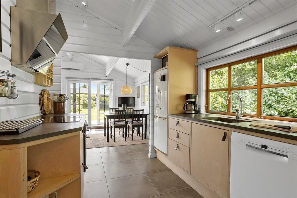 Direkt hinter der Ortsmitte und trotzdem ruhig und friedlich. Nur wenige Minuten zu Fuß in den Ort mit Supermärkt, kleinen Fachgeschäften, einer großen Auswahl an Kunsthandwerkern mit offenen Ateliers und vielen namhaften Restaurants. Außerdem ist die Nordsee in einer angenehmen Entfernung vom Ferienhaus - also packen Sie Ihre Tasche mit Badezeug, Handtüchern und Sonnencreme und verbringen den ganzen Tag in dem weißen Sand und dem blauen Wasser. Besuchen Sie auch gerne die malerische Kirche, besteigen die Wanderdüne “Rubjerg Knude” und genießen den Blick über die Küste der Jammerbucht oder entspannen in Skallerup Seaside Resorts berühmten Wellnessbereich mit Römischen Bad und Bestellung von zusätzlichen Behandlungen aller Art.