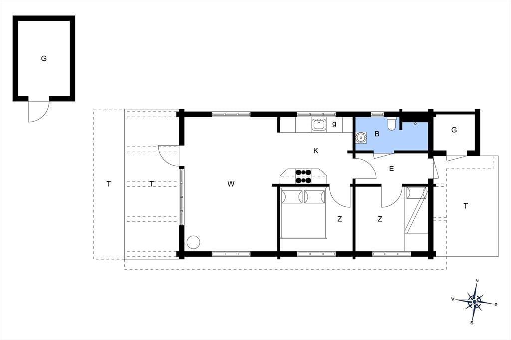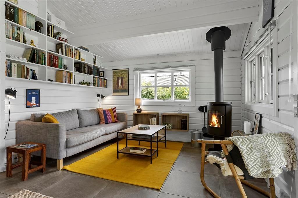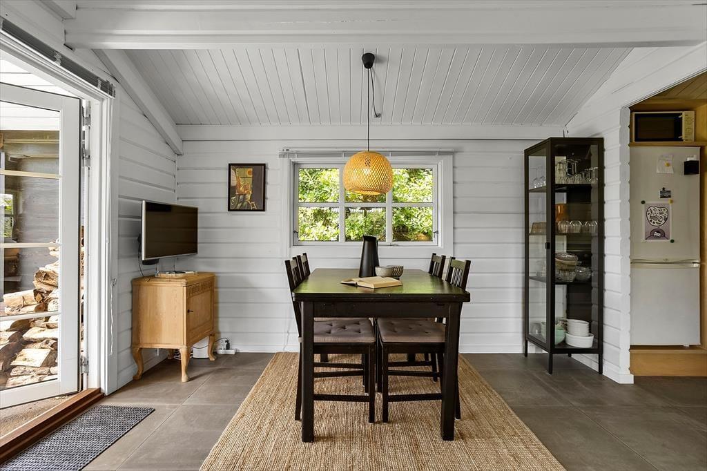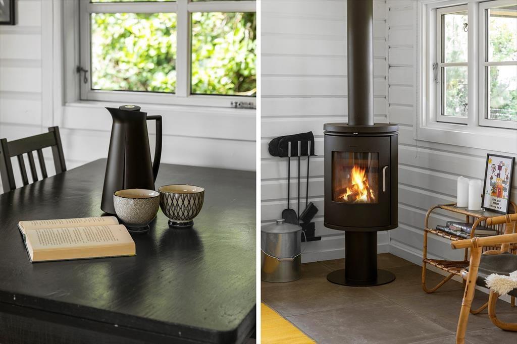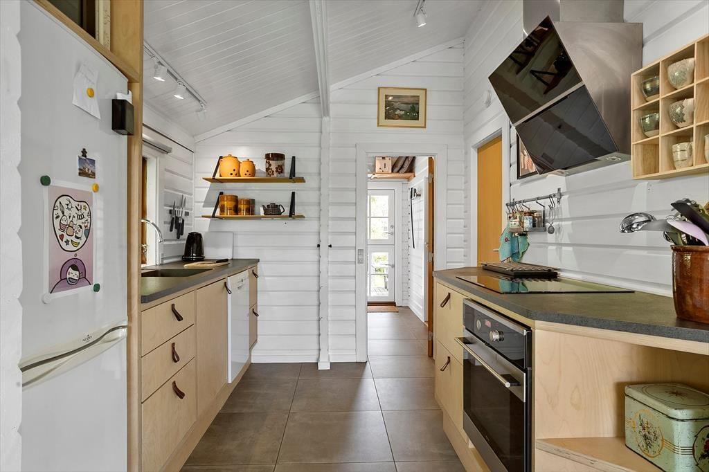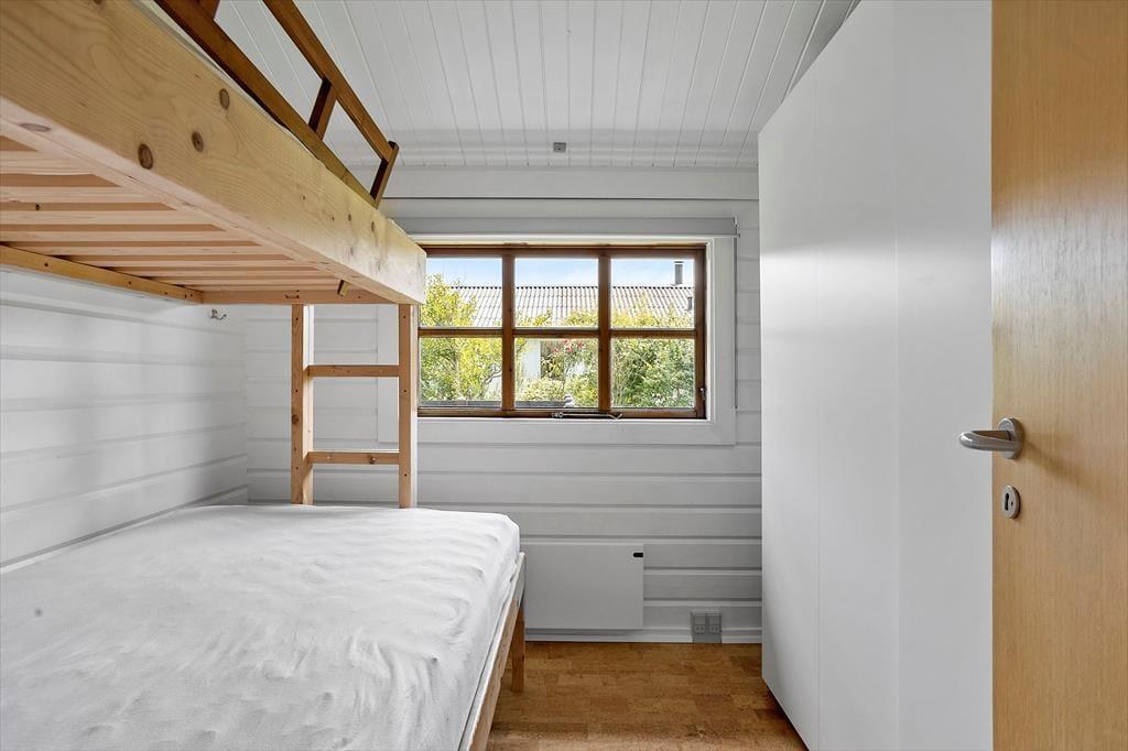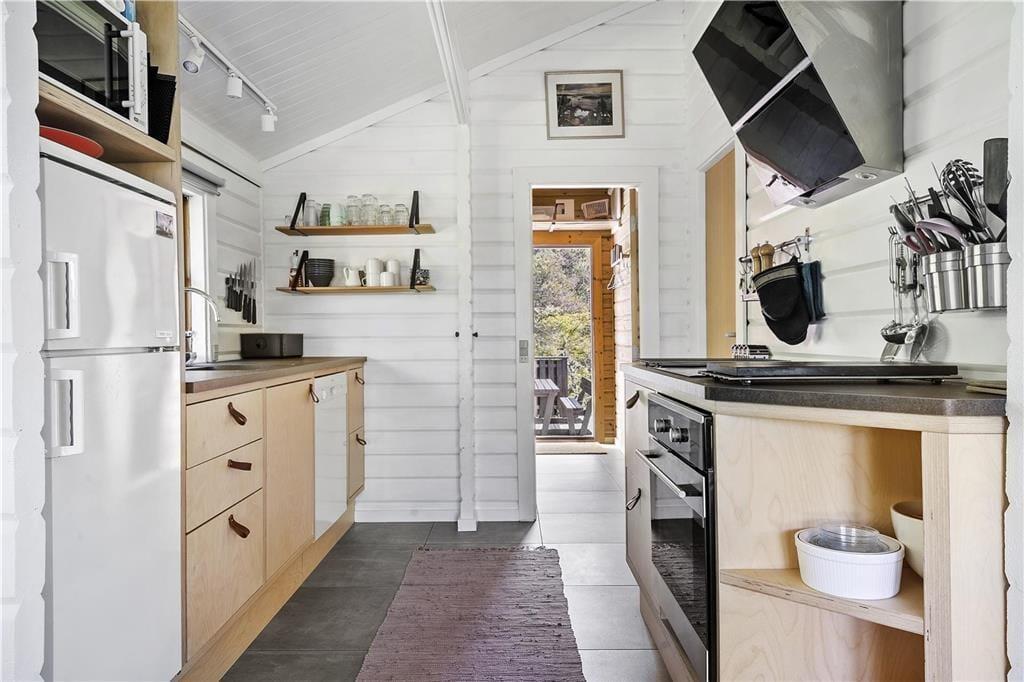 Durch eine Doppelterrassentür wird dieses schöne Ferienhaus betreten. In dem Holzferienhaus wurden schöne Fliesen verlegt und mit dem Kamin kommt die richtige Urlaubsstimmung auf. Eine moderne und funktionale Küche bietet hervorragende Möglichkeiten zum Kochen von leckeren Mahlzeiten. Das Ferienhaus verfügt außerdem über ein tolles Badezimmer und zwei Schlafzimmer, davon ist eins mit einem Doppelbett und das andere mit einem schmalen Doppelbett und einem darüber angebrachten Hochbett ausgestattet.