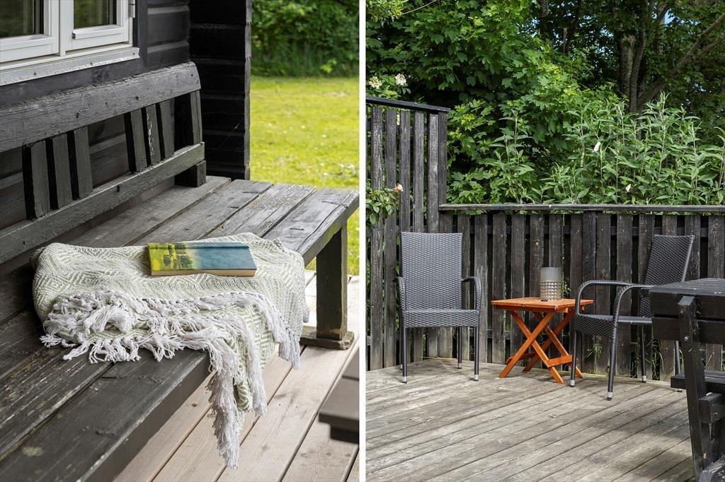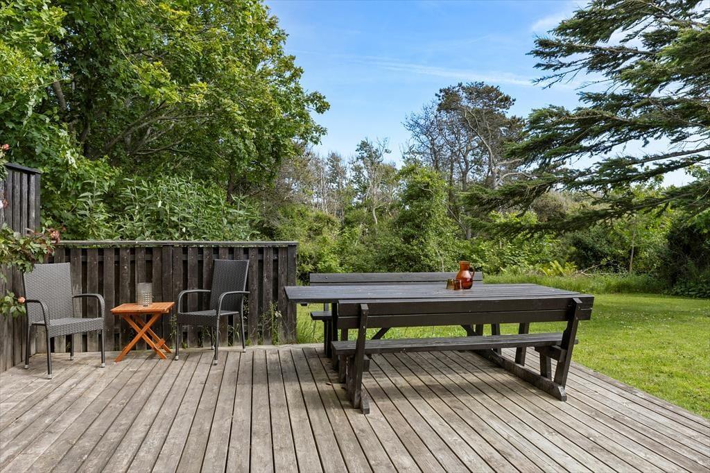 Das Ferienhaus liegt auf einem ebenen Naturgrundstück mit windschützenden Bäumen und Büschen sowie einer schönen, teilweise überdachten Westterrasse, auf der der Sommer mit Sonnenbaden, leckeren Grillmahlzeiten und den langen lauen Abenden verbracht werden kann. Auf der Ostseite des Hauses befindet sich eine herrliche, neu angelegte Terrasse mit wunderbarem Blick über das Naturgrundstück.