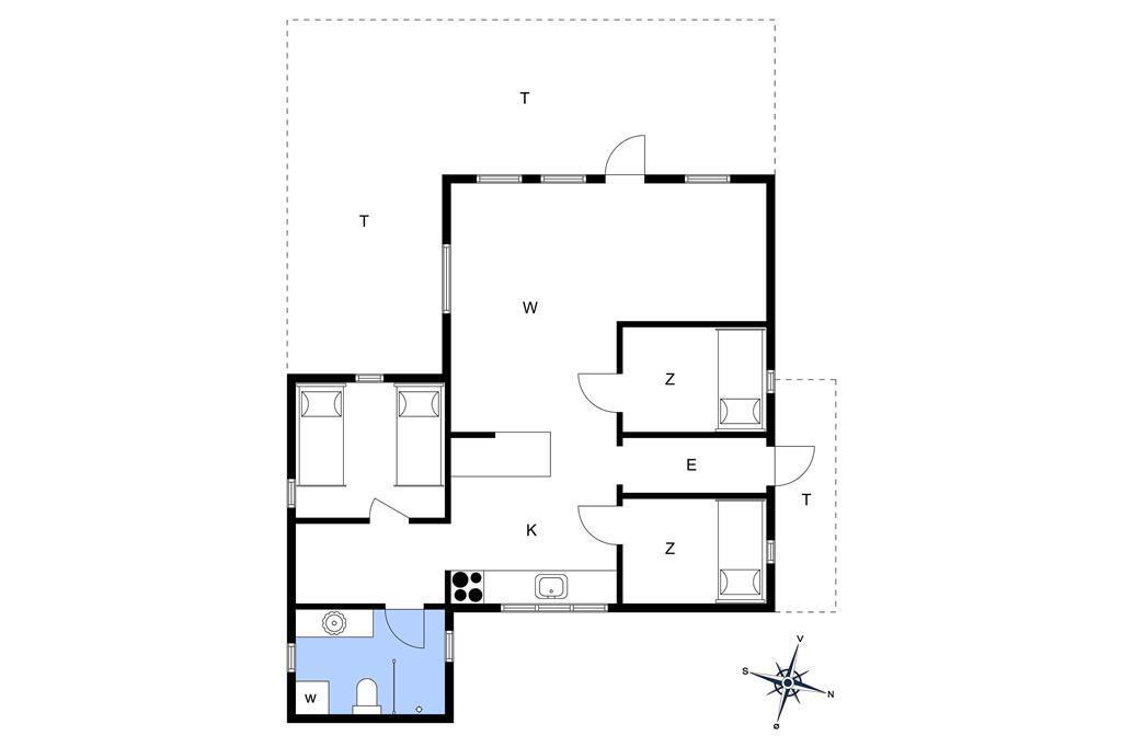 Das gemütlich eingerichtete Mietobjekt empfängt Sie mit einem offen kombinierten Küchen- und Wohnbereich. Hinter der Küche gelangen Sie durch einen kleinen Flur in das große Badezimmer, in dem auch eine Waschmaschine platziert ist. Auch der größte der Schlafräume, in dem zwei Einzelbetten untergebracht sind, ist von diesem Flur zugänglich. Die weiteren Schlafplätze verteilen sich auf zwei Schlafräume mit jeweils einem Einzelbett. Der gemütlich eingerichtete Wohnraum besticht mit seiner hellen und komfortablen Möblierung und einem direkten Zugang zur schönen Terrasse.