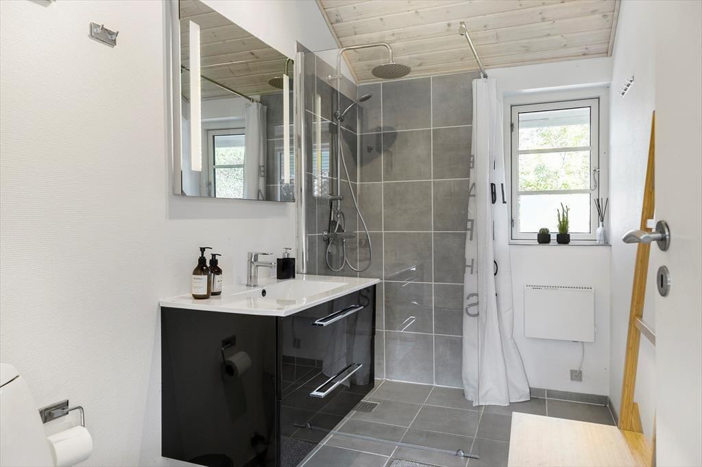 Gemütlich eingerichtetes Ferienhaus mit guter Schlafraumverteilung. Über die Terrasse betreten Sie den Flur des Hauses, einem Durchgang, der das größte Schlafzimmer mit dem Rest des Hauses verbindet. Die gut ausgestattete Küche und der gemütliche Wohnbereich sind offen miteinander verbunden. Ein komfortabler Essbereich sowie eine bequeme Sitzecke sind vorhanden und Sie können von allen Fenstern des Hauses aus die schöne Aussicht über das Grundstück genießen. Insgesamt sind drei Schlafzimmer mit Doppelbetten vorhanden vorhanden und ein Schlafboden mit ein paar Matratzen. Von den beiden Bädern ist das eine mit einer Dusche, das andere mit einer Waschmaschine ausgestattet.