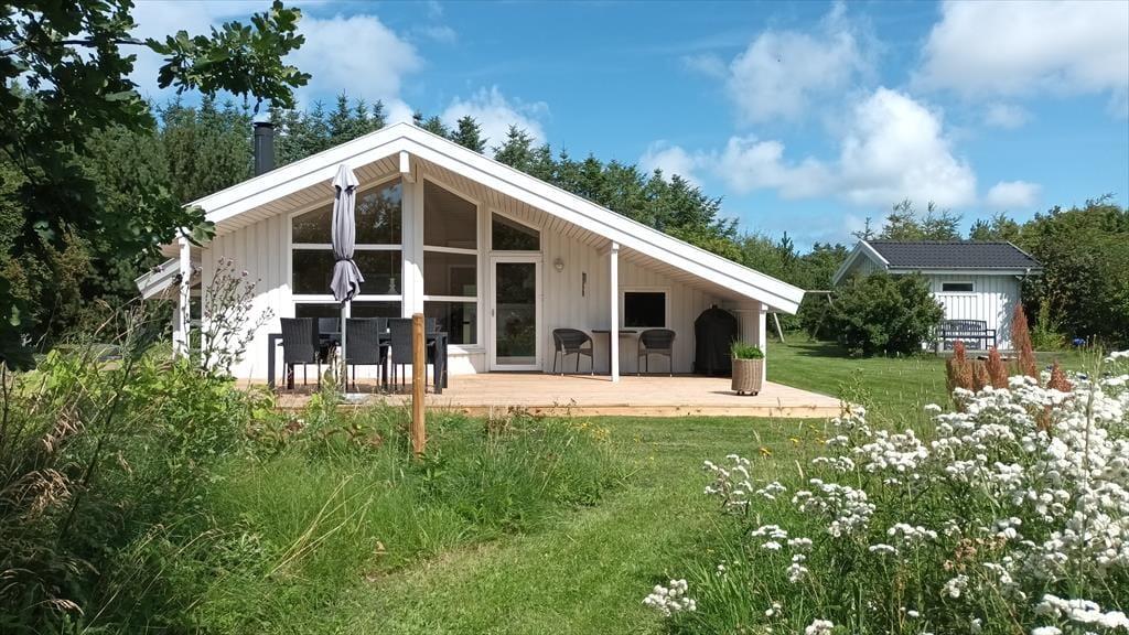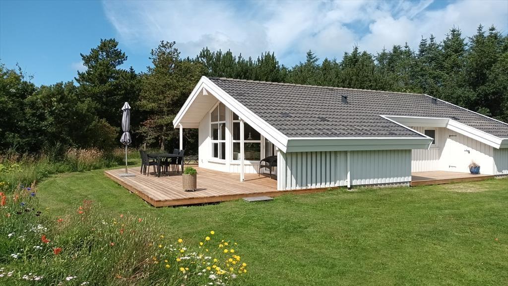 Hier auf der Blokkenbovej 12 erwartet dich ein helles und einladendes Ferienhaus, in dem du das Urlaubsleben mitten in der friedlichen Natur genießen kannst. Das Haus liegt auf einem großen, wunderschönen Naturgrundstück mit viel Grün ringsum, und die großzügige Terrasse lädt zu entspannten Stunden unter freiem Himmel ein. Ein herrlicher Ort für Familien, befreundete Paare und nicht zuletzt für alle, die ihren Hund mit in den Urlaub nehmen möchten – hier ist reichlich Platz für alle.