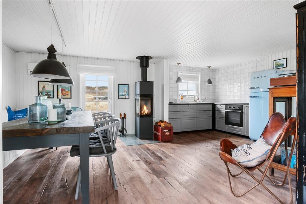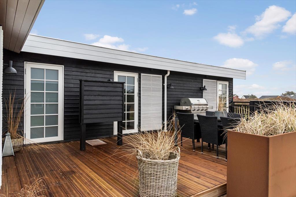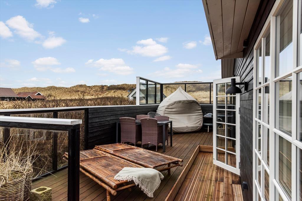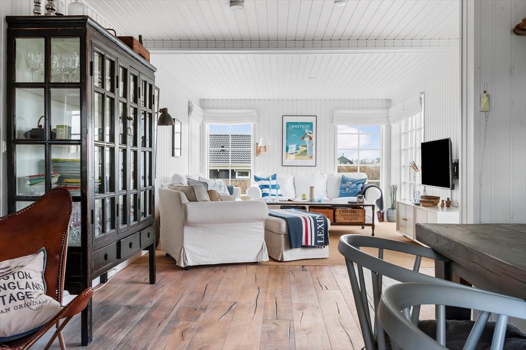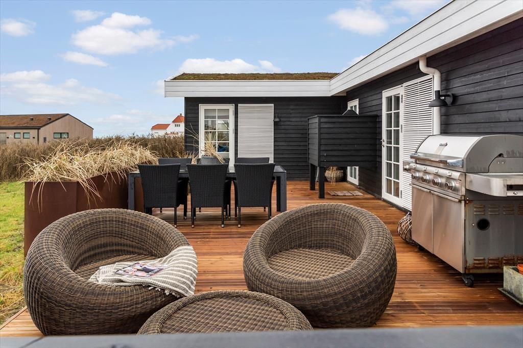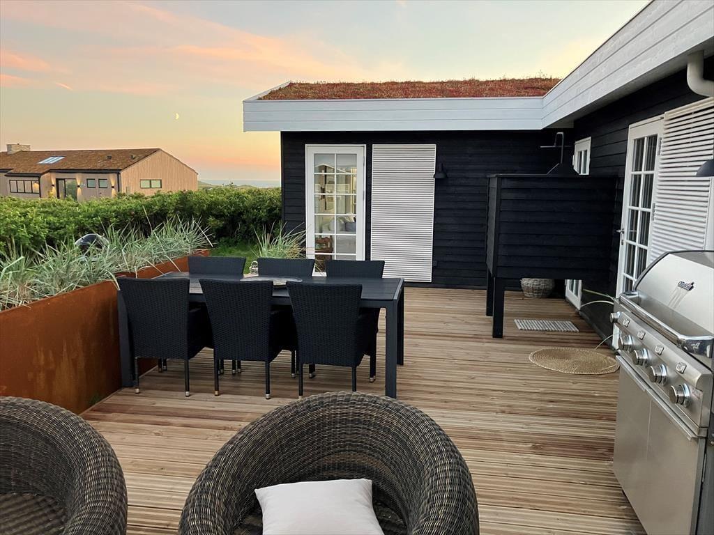 Träumen Sie von einem Urlaub in einem einzigartigen Ferienhaus mit Meerblick und exklusiver Einrichtung? In Revlen 48 in Lønstrup Strand und By erwartet Sie ein wunderschönes Urlaubserlebnis in einem Haus, das Badehaus-Charme mit rohem New England-Stil kombiniert. Hier können Sie das Rauschen der Wellen, modernen Komfort und ein fantastisches Outdoor-Leben genießen.