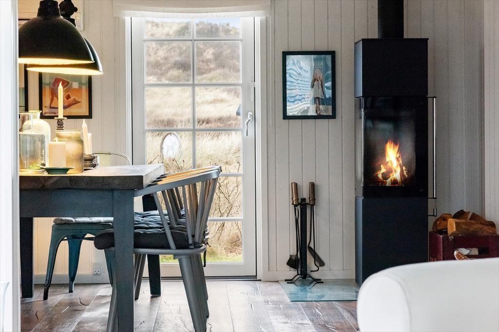 Das Ferienhaus beeindruckt vom ersten Moment an mit seiner einzigartigen Kombination aus Badehaus-Stil und industriellen New England-Details. Große Fensterfronten lassen das Licht hereinströmen und bieten einen atemberaubenden Blick auf das Meer, während rohe Backsteindetails und stilvolle Möbel eine luxuriöse, moderne Atmosphäre schaffen. Das geräumige Wohnzimmer lädt zu gemütlichen Abenden vor dem Kamin ein, während die offene Küche es einfach macht, gemeinsam Mahlzeiten zuzubereiten. Hier wurde eine perfekte Balance zwischen Komfort und Stil geschaffen, sodass Sie in einer wunderschönen Umgebung entspannen können.