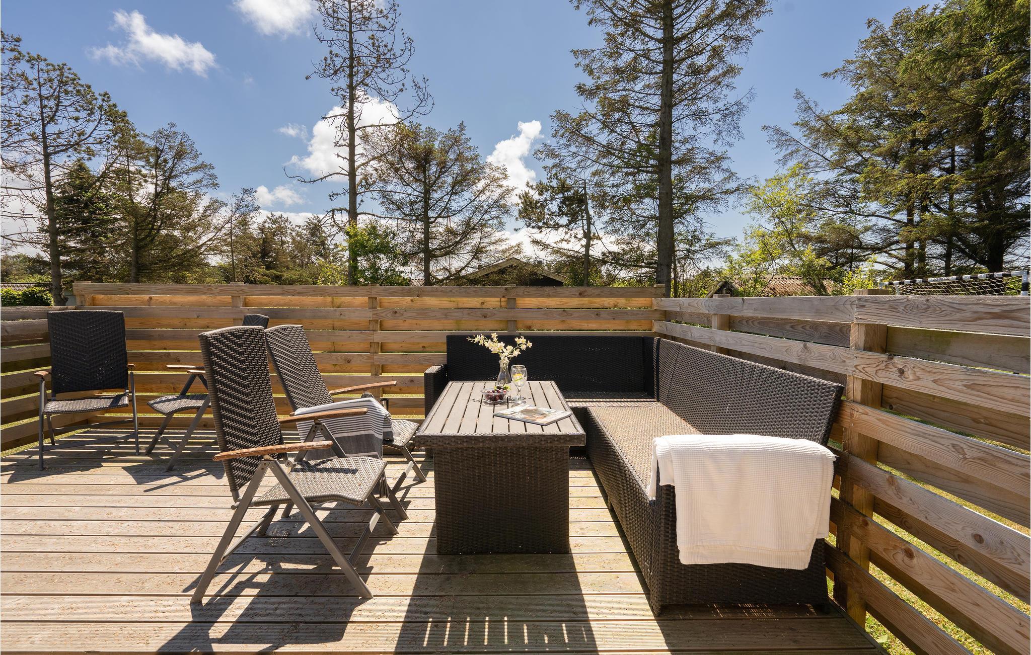 Helles Ferienhaus in Lønstrup mit großem Garten, Holzterrasse und kinderfreundlicher Ausstattung für erholsame Tage in der Natur.