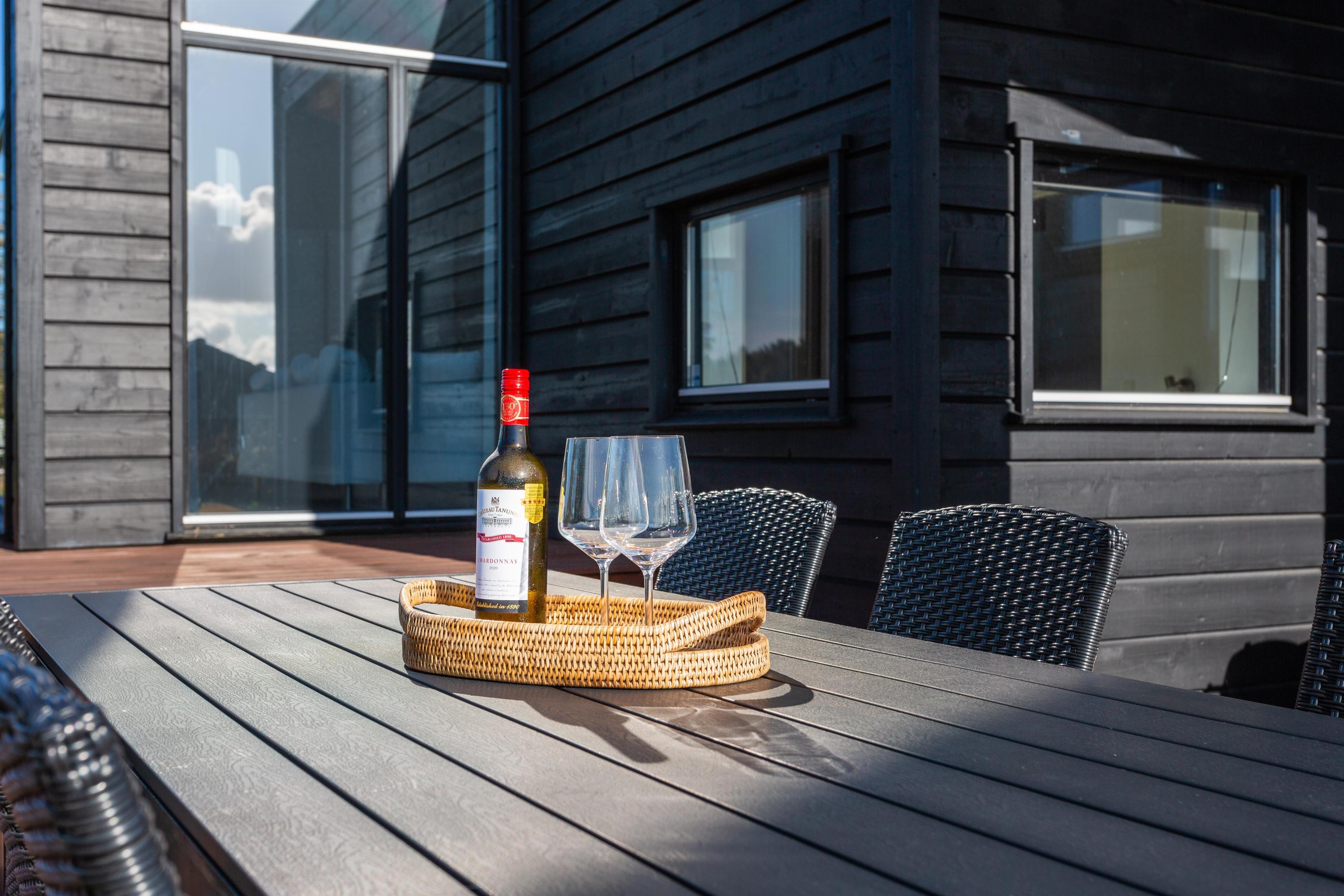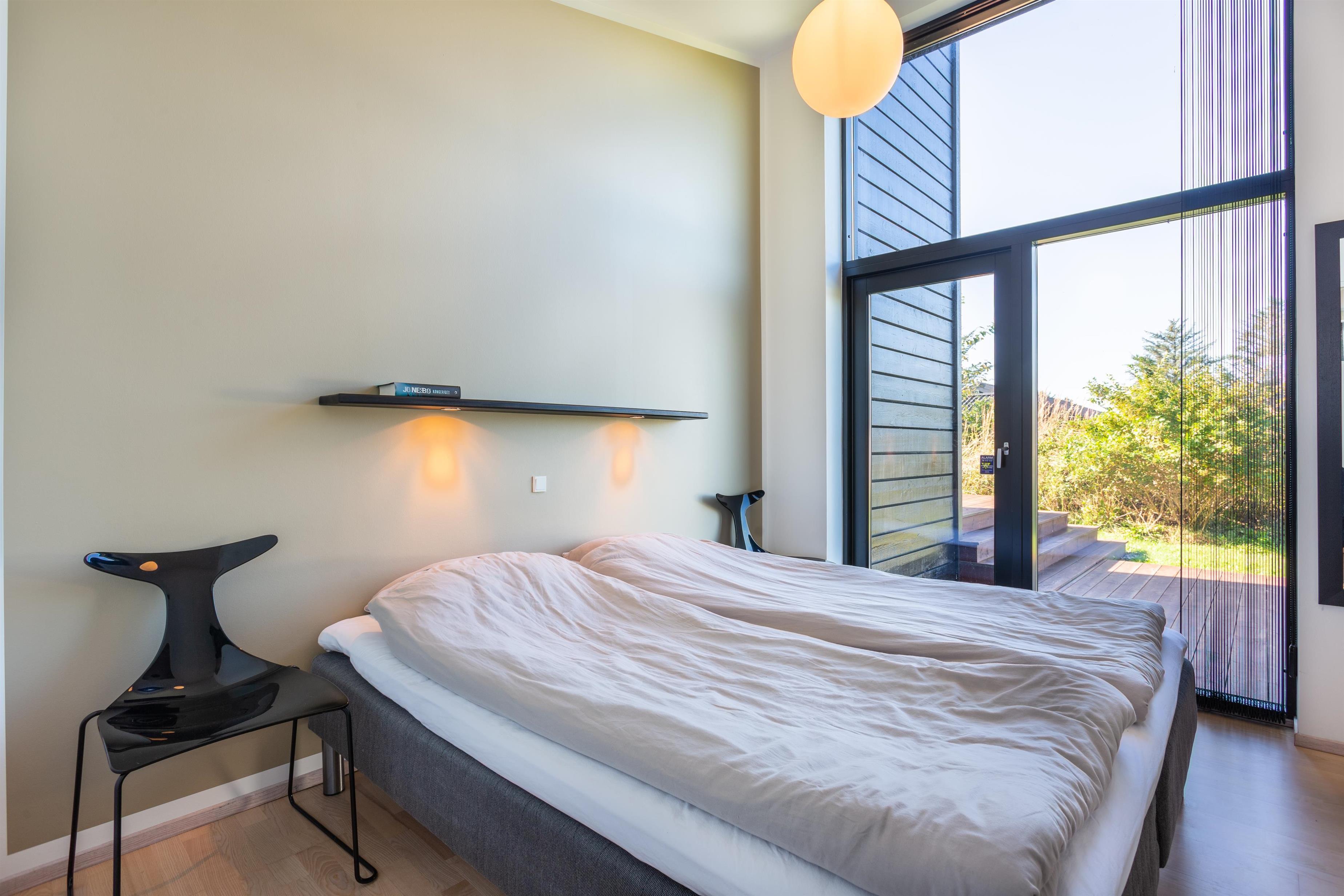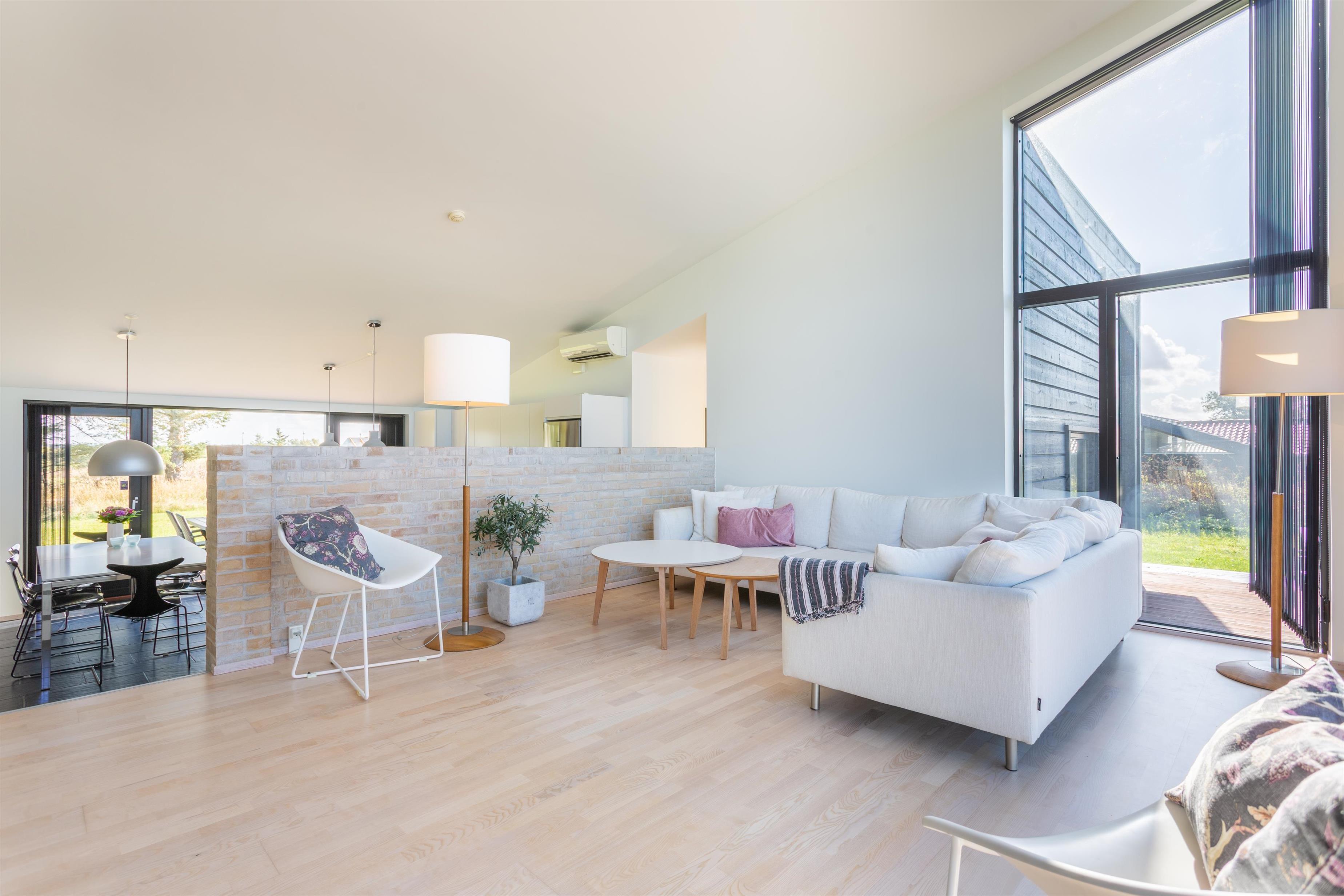Dieses einladende Sommerhaus wurde im eleganten Funktionalismusstil mit einem einseitigen Satteldach und stilvollen Materialien erbaut. Die großen Fenster von Boden bis Decke sorgen für ein fantastisches Licht und vermitteln das Gefühl, dass die Natur Teil des Hauses wird. Dies ist ein Haus mit großem Komfort für den Feriengast, der weder bei Ästhetik noch bei Qualität Kompromisse eingeht.