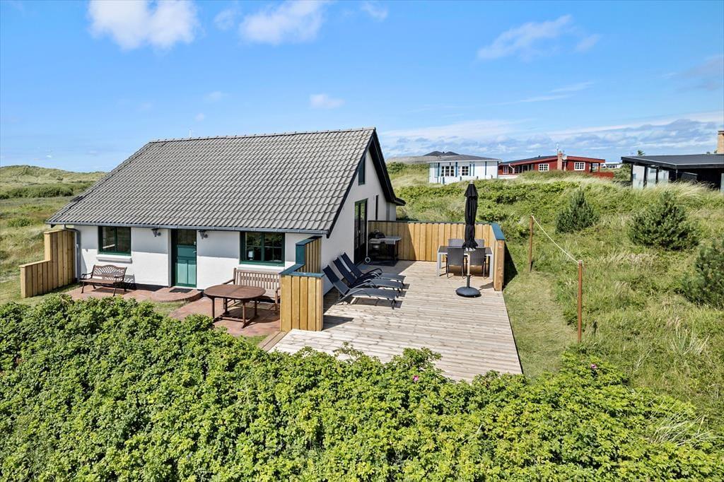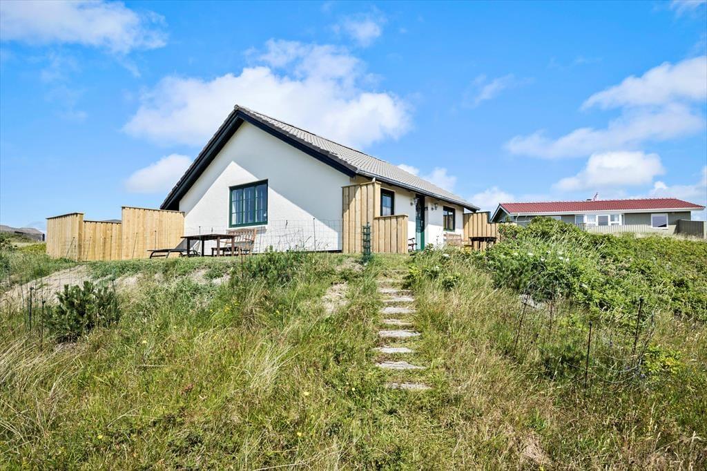 Du wohnst am Ende eines kleinen Weges und wirst mit einem Ausblick über die offene Dünenlandschaft verwöhnt – näher kannst du dem Strand von Lakolk kaum kommen.