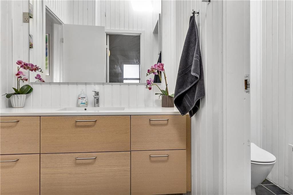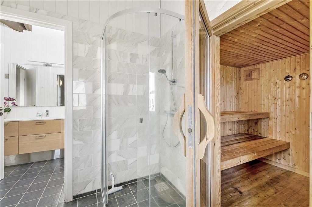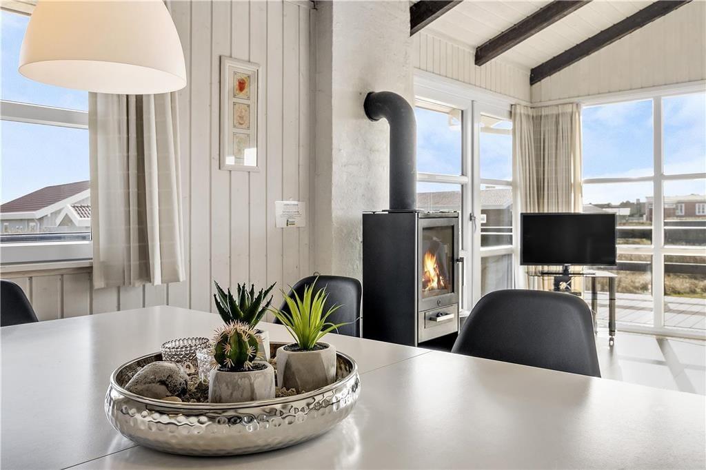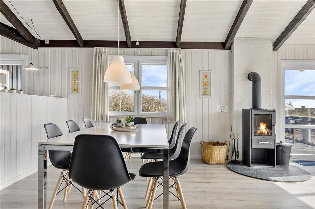 Im Wohnbereich dieses schönen und gut gepflegten Ferienhauses kannst du dich auf ganzen 120 m² ausbreiten. Mit so viel Platz hast du die Möglichkeit, gemeinsam mit Verwandten oder Freunden in den Urlaub zu fahren, da das Haus über drei Schlafzimmer und einen Anbau verfügt, welche zusammen acht Feriengäste beherbergen können. Alle können sich im großen Aufenthaltsraum versammeln, wo die Küche und das Wohnzimmer in offener Verbindung zueinander liegen. In bester Ferienhaus-Manier verfügt das Haus über hohe Decken und helle Holzleisten an den Wänden. Die großen Fensterpartien des Aufenthaltsraumes sorgen dafür, dass du das Tageslicht und die schöne umliegende Natur genießen kannst, während du dich in der Sofaecke entspannst oder es dir vor dem Kaminofen gemütlich machst. Wenn du gerne auszuspannen möchtest, ist es empfehlenswert, einen Wellness-Abend im Badezimmer vorzubereiten, welches mit einem Whirlpool und einer Sauna eingerichtet ist.
