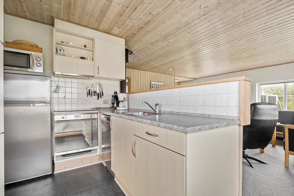 Ferienhaus in Lakolk, Westjütland, mit Platz für 3 Erwachsene. Es erwartet Sie eine gemütliche Einrichtung mit u.a. Kamin, darüber hinaus sind Waschmaschine und Spülmaschine in dieser Unterkunft vorhanden.