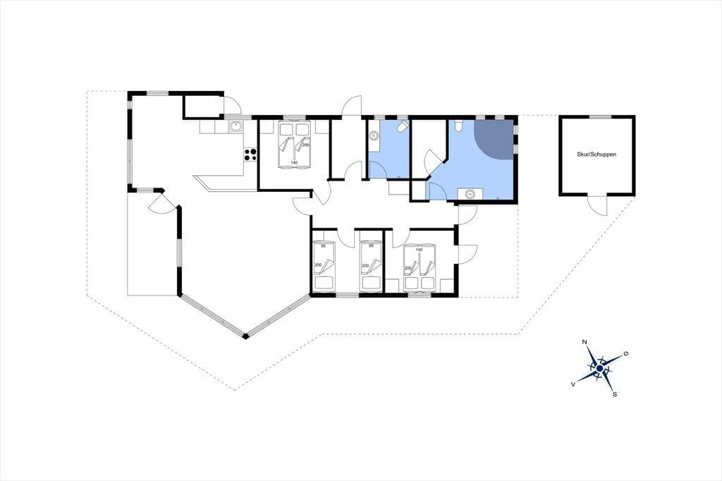 Der Grundriss beinhaltet drei gute Schlafzimmer, von denen zwei mit je einem Doppelbett und eines mit zwei Einzelbetten eingerichtet sind.