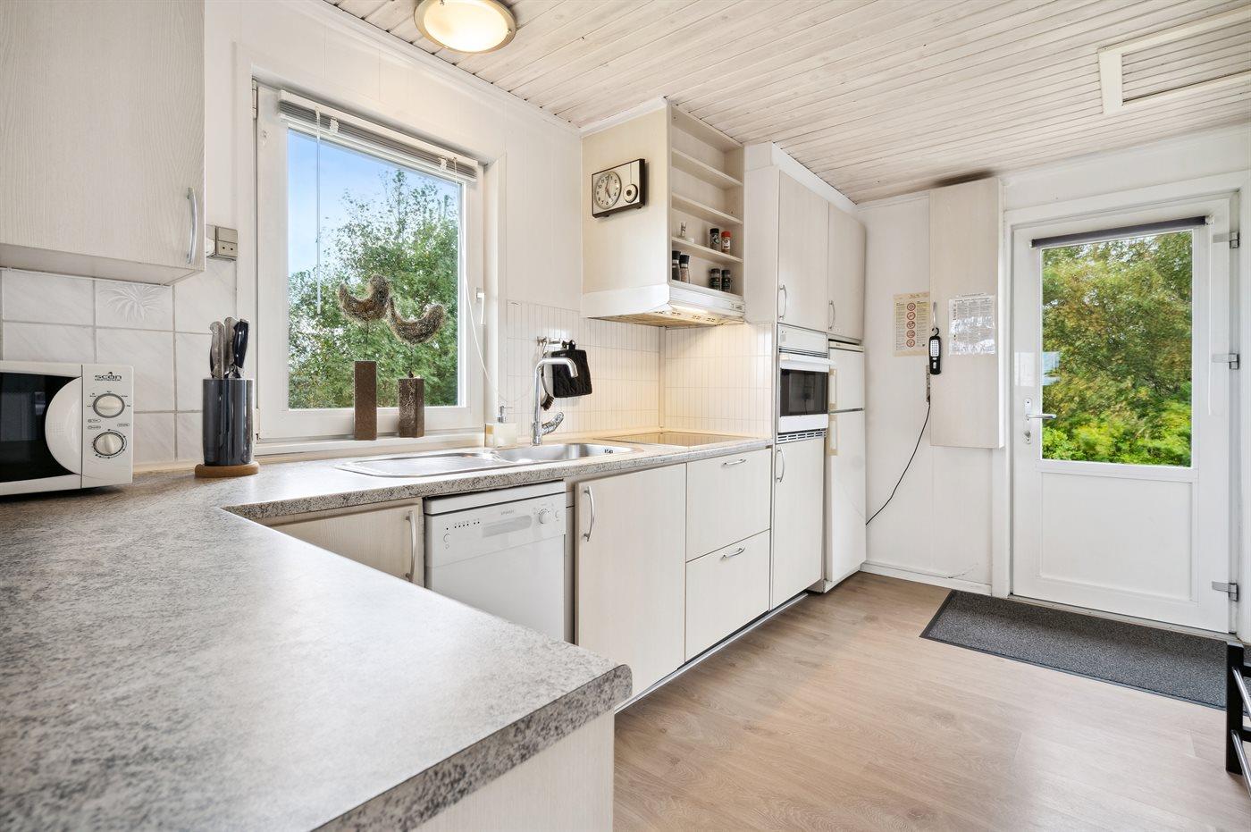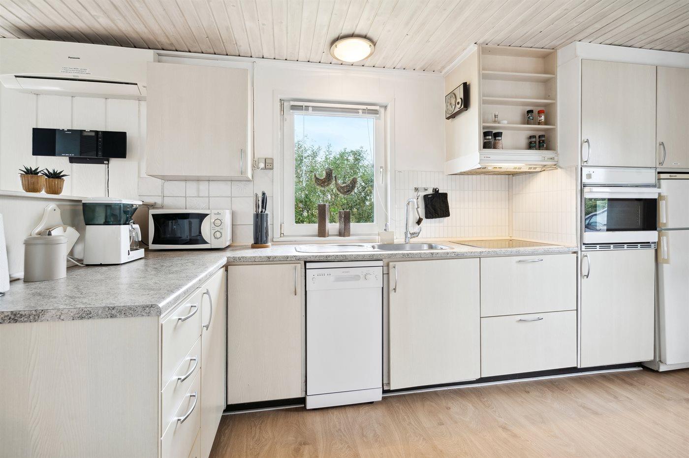 Die Küche ist mit Kühlschrank ausgestattet, Umluftofen, Mikrowelle sowie Geschirrspüler.