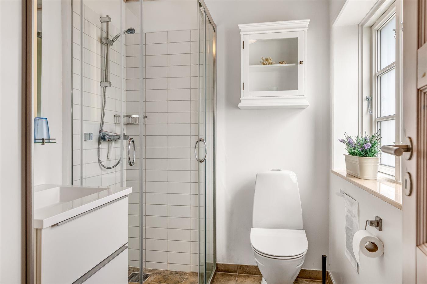 Es gibt 1 Badezimmer mit Duschnische und 1 Toilette.