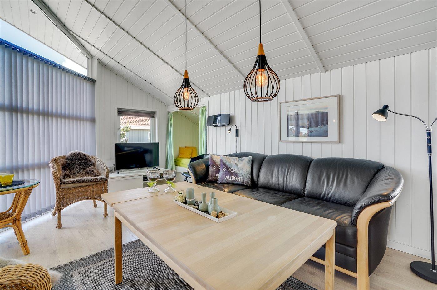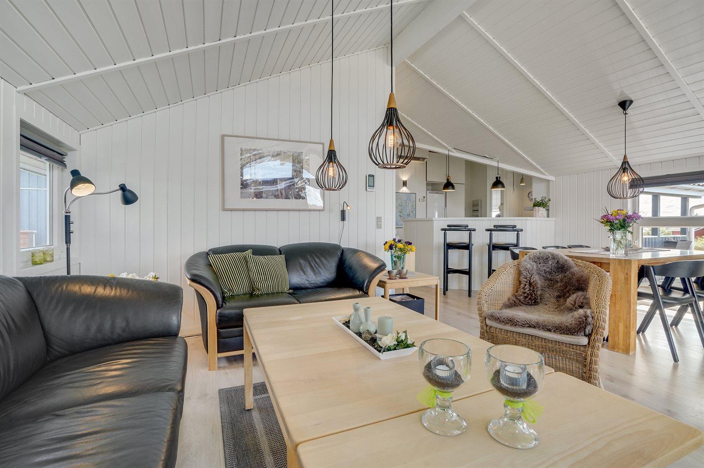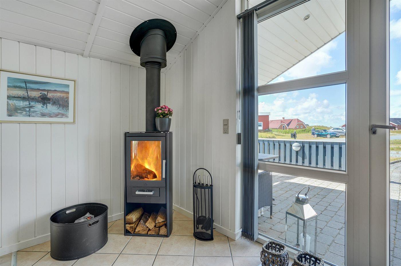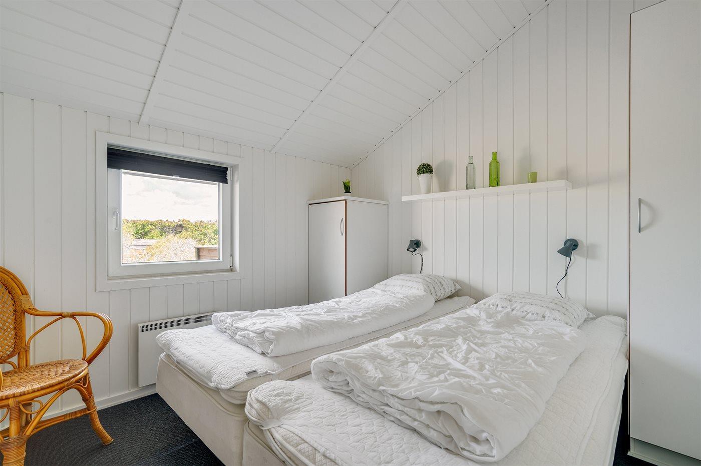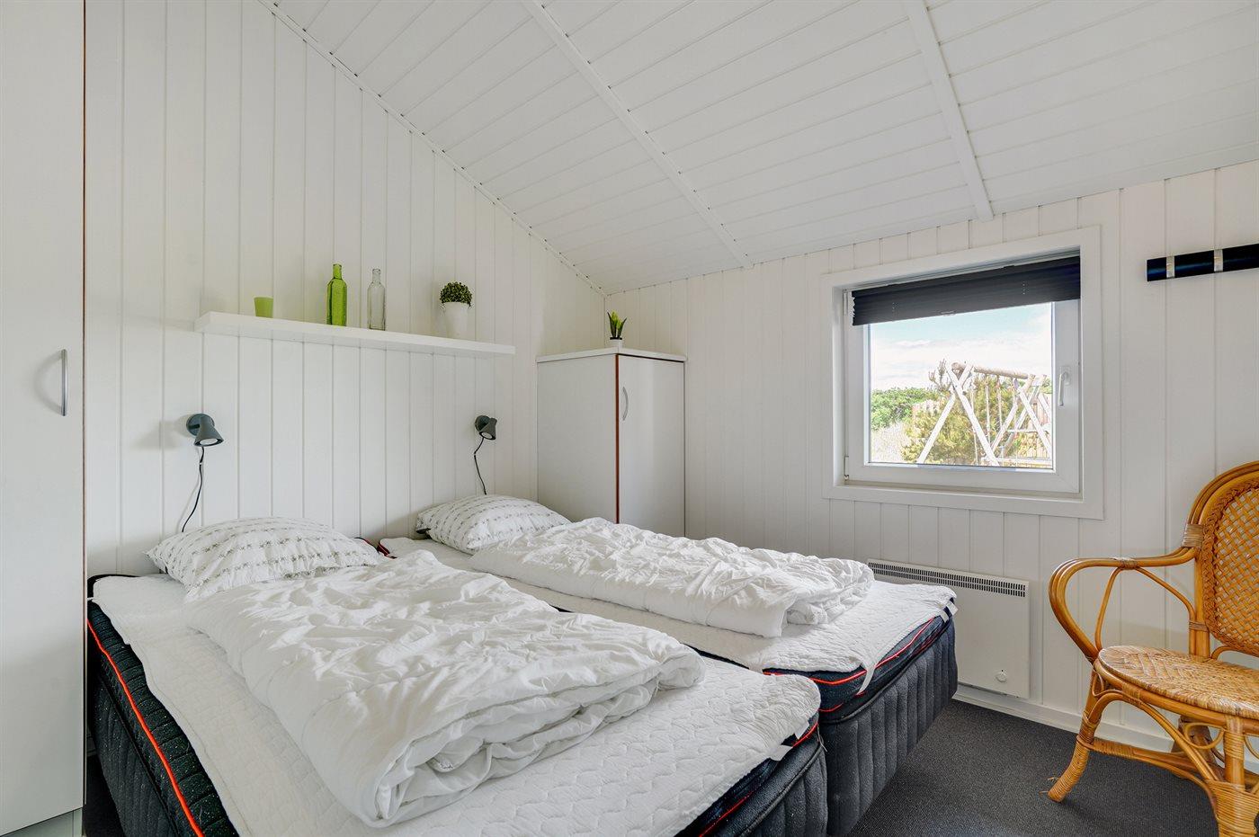 Auf einem Naturgrundstück nur 400 m vom Strand entfernt liegt dieses schöne Ferienhaus aus Holz, 2000 gebaut und2020 letztens renoviert. Zum Haus gehört ein großes, sowohl offenes als auch überdachtes Terrassenareal mit Gartenmöbeln und großem Steinkamin/-Grill - hier können Sie u. a. die Morgensonne genießen. Badezimmer mit 2-Pers.-Whirlpool, Dusche, Fußbodenheizung, Waschmaschine, Wäschetrockner sowie direktem Zugang zur Sauna. Gästetoilette mit Fußbodenheizung. Die gut ausgestattete Küche mit beheizbarem Boden liegt in Verbindung mit dem Wohnzimmer, und ist mit u. a. Tiefkühlgerät, Mikrowelle und Geschirrspüler ausgestattet. Großes, schönes Ess- und Wohnzimmer mit u. a. Kaminofen, Kabel-TV, DVD-Spieler, Stereoanlage mit CD-Spieler sowie Alkoven mit 2 Schlafplätzen. Vom Esszimmer aus hat man eine schöne Aussicht über die Dünen. Die letzten 6 Schlafplätze verteilen sich auf 3 Zimmer; 2 mit Doppelbett und 1 mit 2 Einzelbetten. An weiterer Ausstattung kann kostenlose, kabellose Internetverbindung (Computer ist mitzubringen) erwähnt werden und es ist eine energiegerechte Wärmepumpe installiert. Für die kleinen Feriengäste stehen Schaukel und Sandkasten bereit auf dem Grundstück. Das Haus liegt nur wenige Minuten zu Fuß vom Strand entfernt.