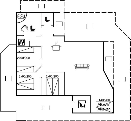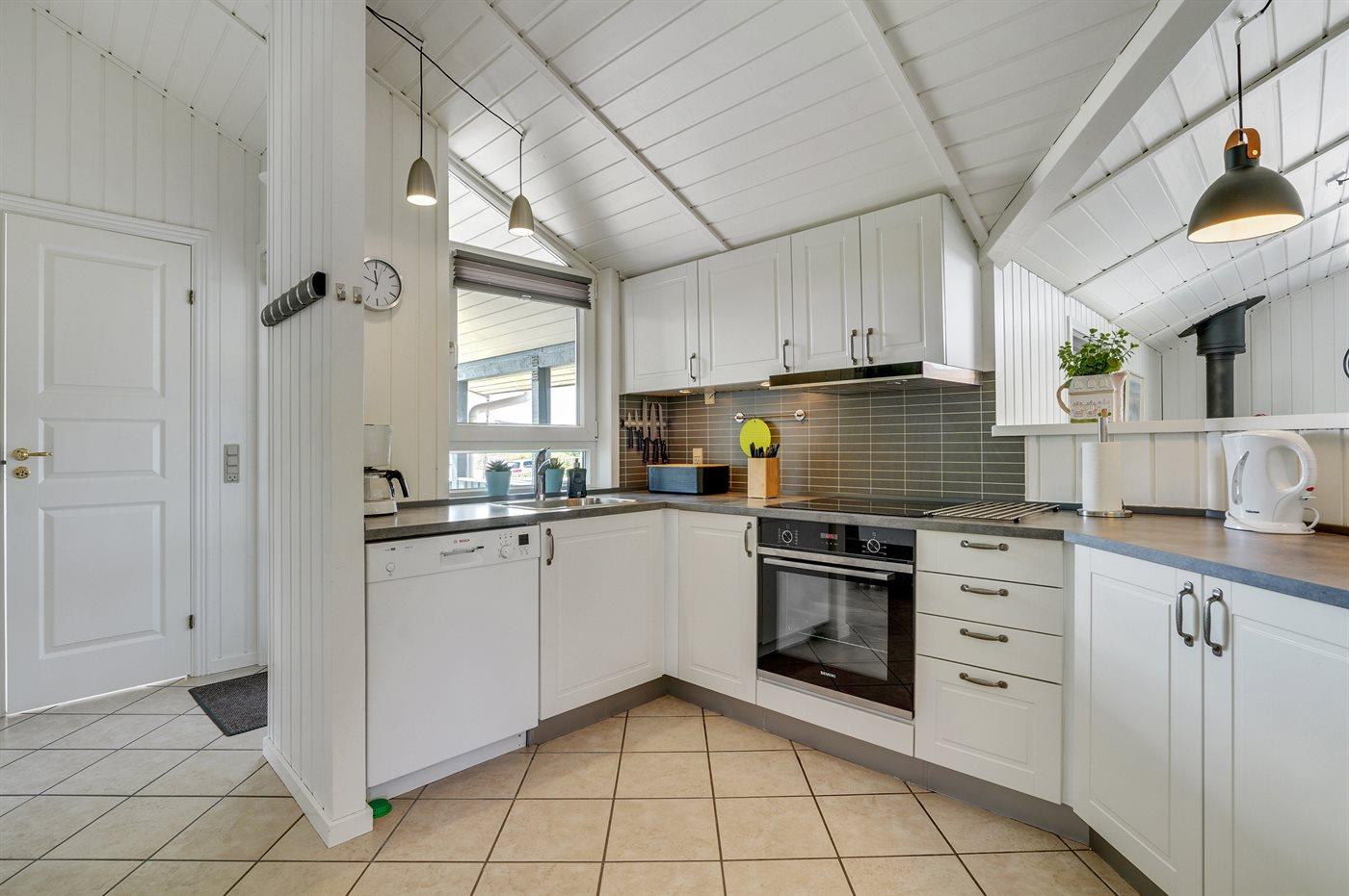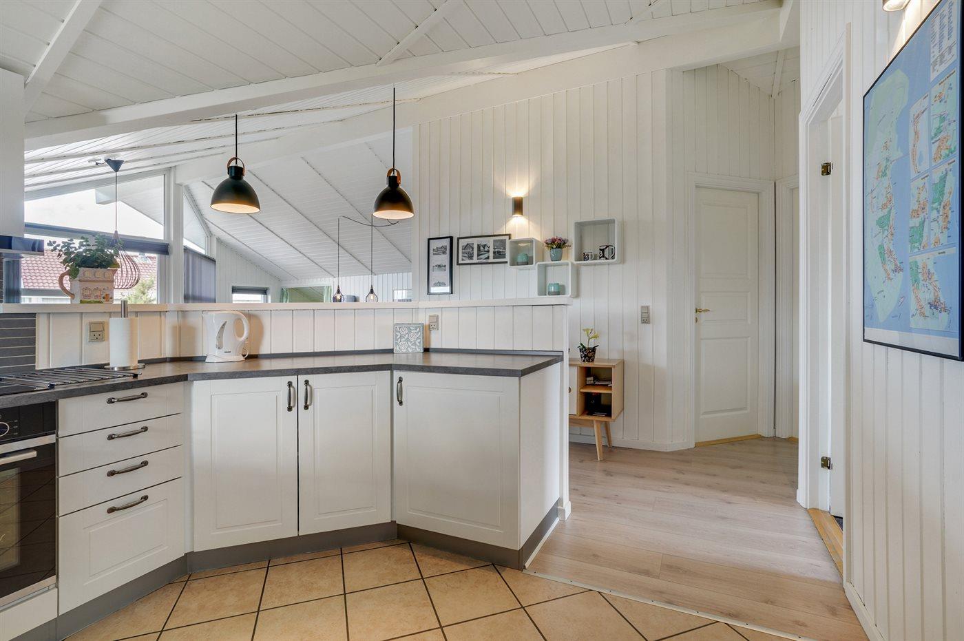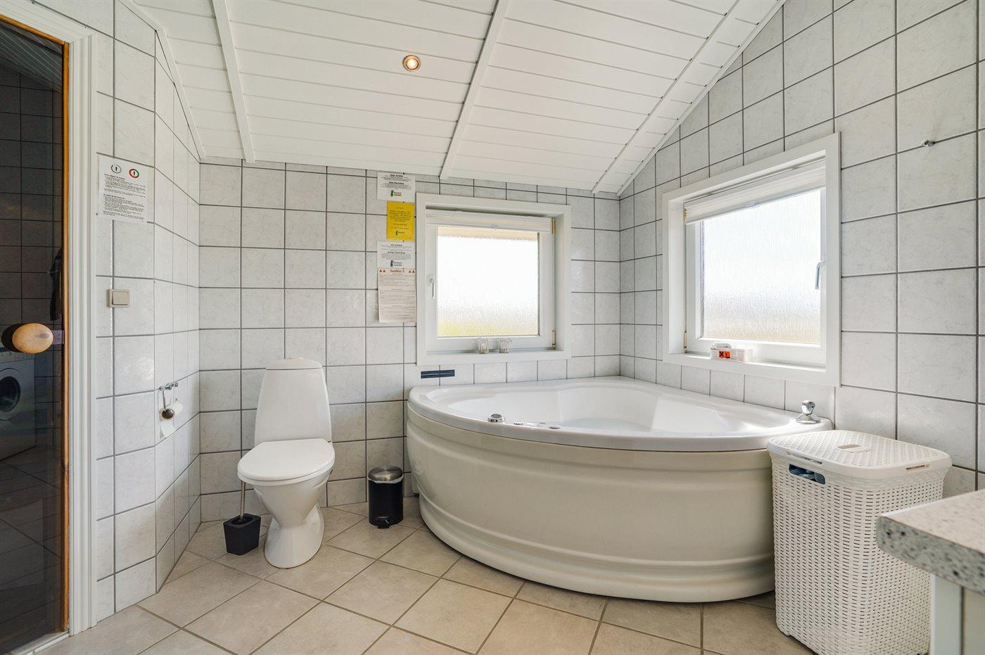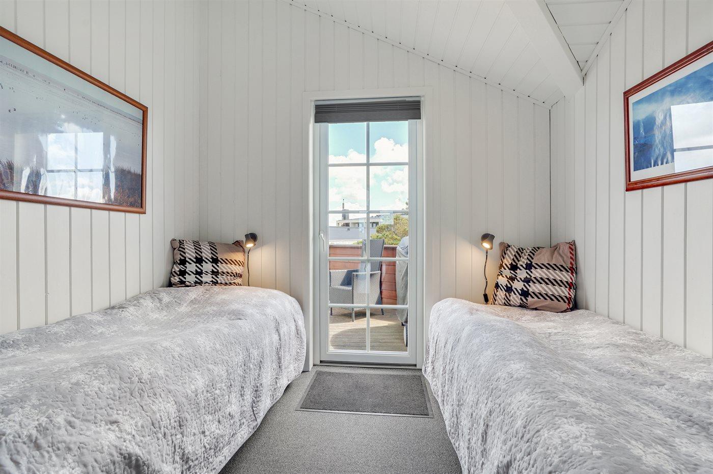 Auf einem Naturgrundstück nur 400 m vom Strand entfernt liegt dieses schöne Ferienhaus aus Holz, 2000 gebaut und2020 letztens renoviert. Zum Haus gehört ein großes, sowohl offenes als auch überdachtes Terrassenareal mit Gartenmöbeln und großem Steinkamin/-Grill - hier können Sie u. a. die Morgensonne genießen. Badezimmer mit 2-Pers.-Whirlpool, Dusche, Fußbodenheizung, Waschmaschine, Wäschetrockner sowie direktem Zugang zur Sauna. Gästetoilette mit Fußbodenheizung. Die gut ausgestattete Küche mit beheizbarem Boden liegt in Verbindung mit dem Wohnzimmer, und ist mit u. a. Tiefkühlgerät, Mikrowelle und Geschirrspüler ausgestattet. Großes, schönes Ess- und Wohnzimmer mit u. a. Kaminofen, Kabel-TV, DVD-Spieler, Stereoanlage mit CD-Spieler sowie Alkoven mit 2 Schlafplätzen. Vom Esszimmer aus hat man eine schöne Aussicht über die Dünen. Die letzten 6 Schlafplätze verteilen sich auf 3 Zimmer; 2 mit Doppelbett und 1 mit 2 Einzelbetten. An weiterer Ausstattung kann kostenlose, kabellose Internetverbindung (Computer ist mitzubringen) erwähnt werden und es ist eine energiegerechte Wärmepumpe installiert. Für die kleinen Feriengäste stehen Schaukel und Sandkasten bereit auf dem Grundstück. Das Haus liegt nur wenige Minuten zu Fuß vom Strand entfernt.