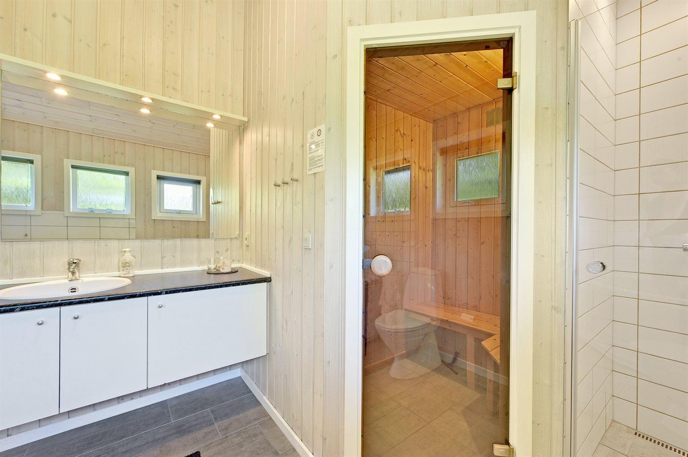 Es gibt 1 Badezimmer mit Dusche und 2 Toiletten, davon 1 Gästetoilette. Fußbodenheizung in 1 Badezimmer. Fußbodenheizung in der Gästetoilette. Es steht eine Sauna zur Verfügung in der Sie sich so richtig entspannen können.