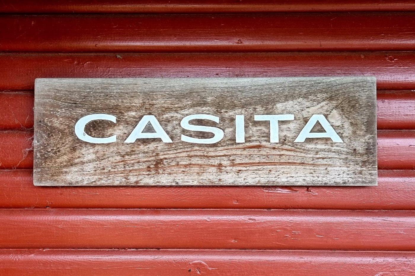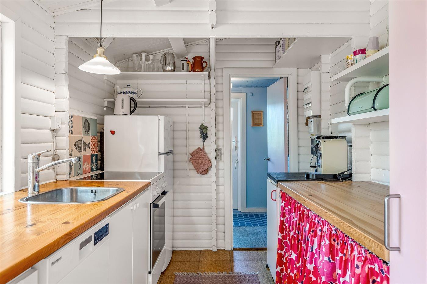 Ein gemütliches kleines Ferienhaus – wo der Charme der Einrichtung der 60er-Jahre erhalten ist. Ein Teil des Gartens hinter dem Haus ist eingezäunt, damit der Hund frei laufen kann.