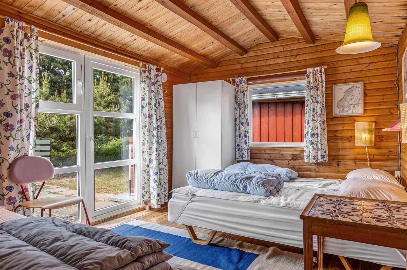 Die Schlafplätze verteilen sich auf 2 Schlafräume. 2 Schlafplätze in einem Doppelbett. 3 Schlafplätze in Einzelbetten.