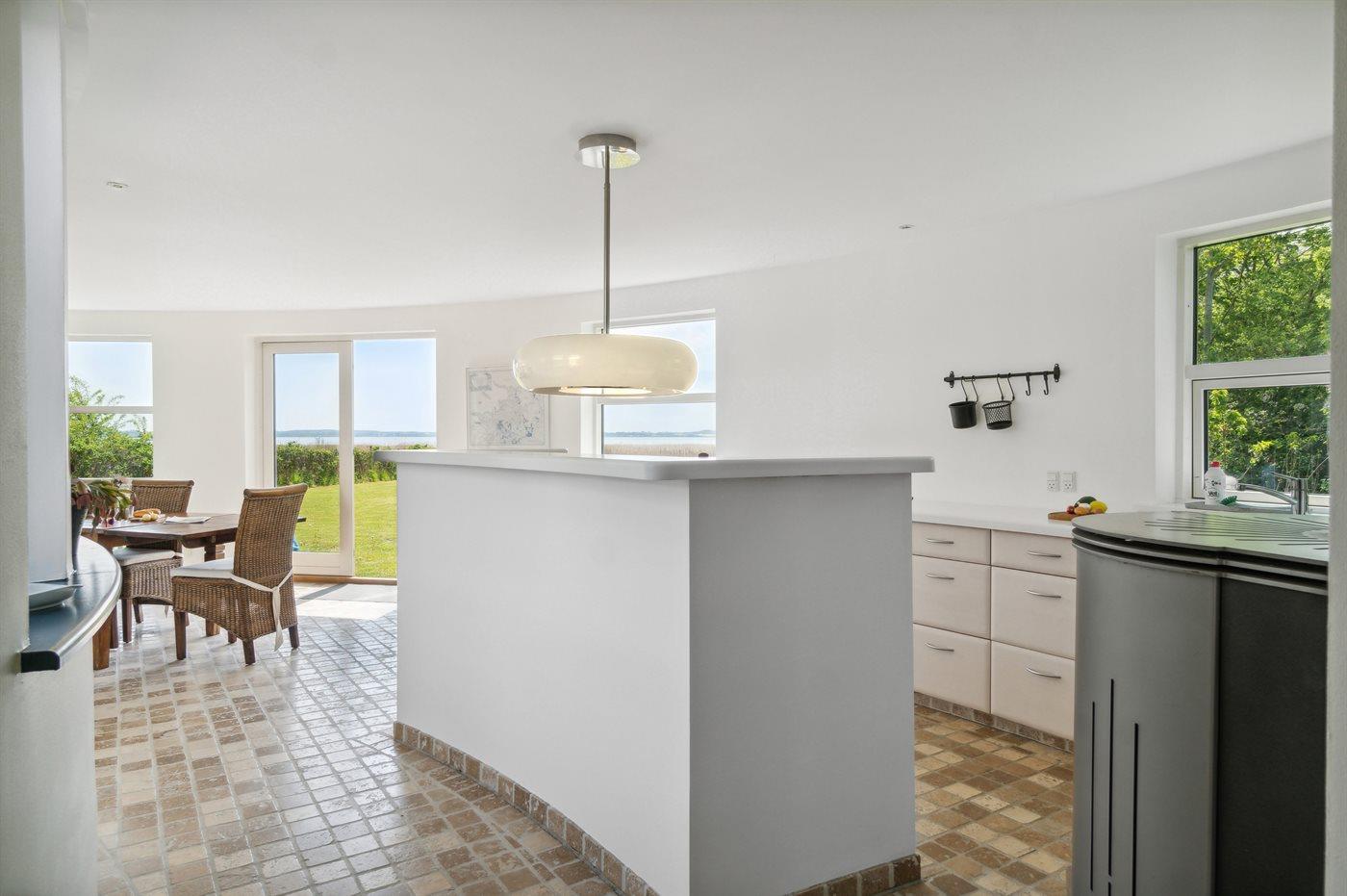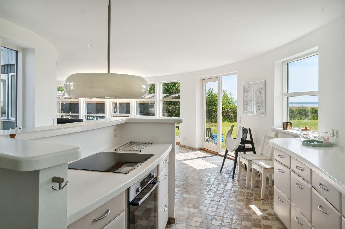 Dieses einzigartige und unik erbaute Sommerhaus liegt erster Reihe und hat Panoramaausblick auf den Lammefjord.
