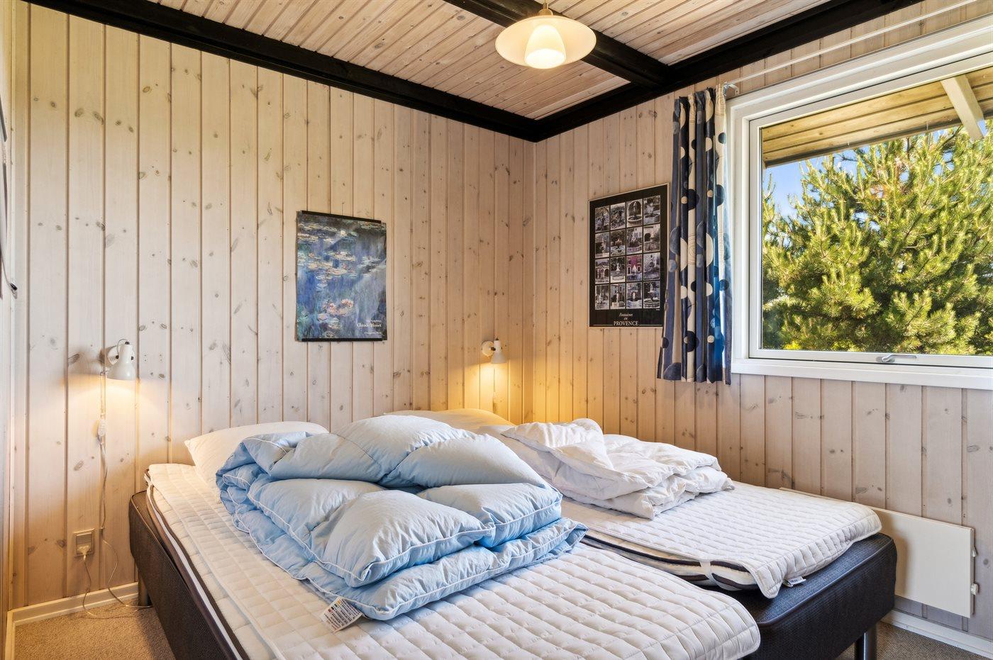Die Schlafplätze verteilen sich auf 3 Schlafräume. 2 Schlafplätze in einem Doppelbett. 3 Schlafplätze in Einzelbetten. Ferner steht ein Kinderbett zur Verfügung.