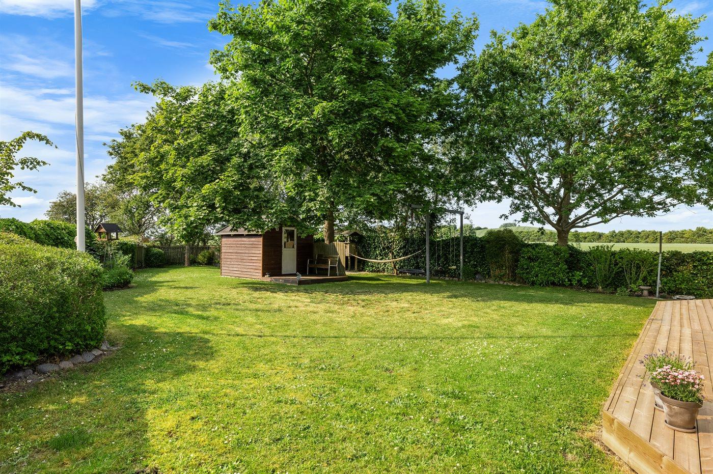 Im Garten findest du unter anderem einen Spielturm mit Rutsche, Schaukeln, eine Lagerfeuerstelle und viel Platz für Aktivitäten im Freien.