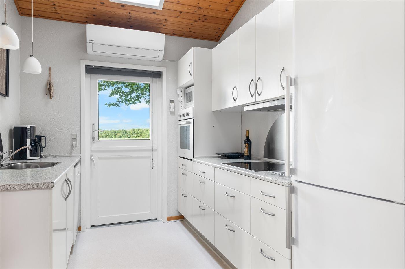 Die Küche ist mit Kühlschrank ausgestattet. Außerdem gibt es 4 Keramik-Kochfelder, Umluftofen, Mikrowelle sowie Geschirrspüler.