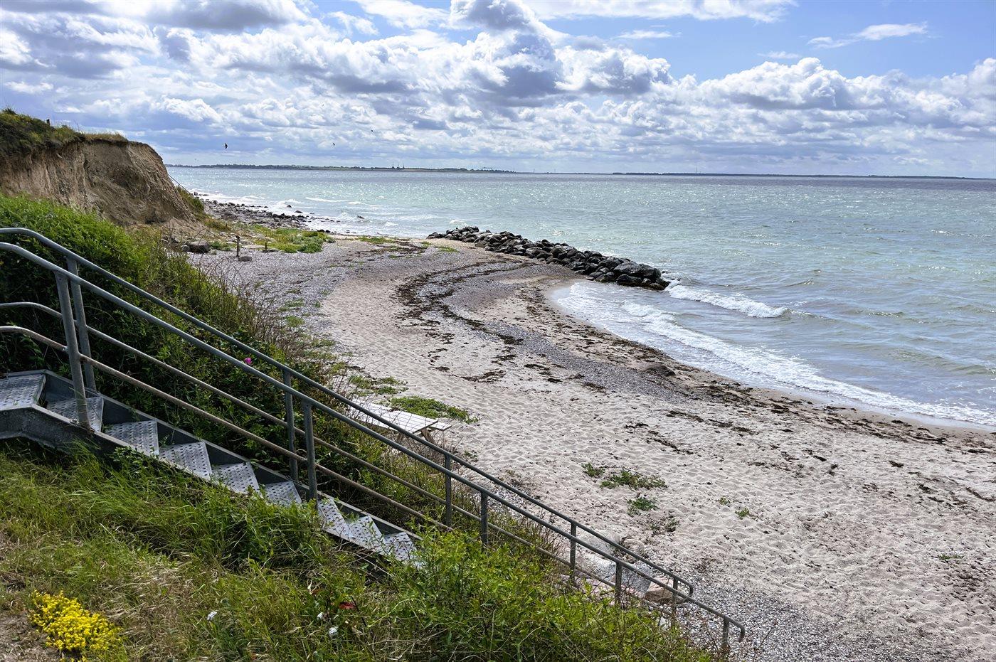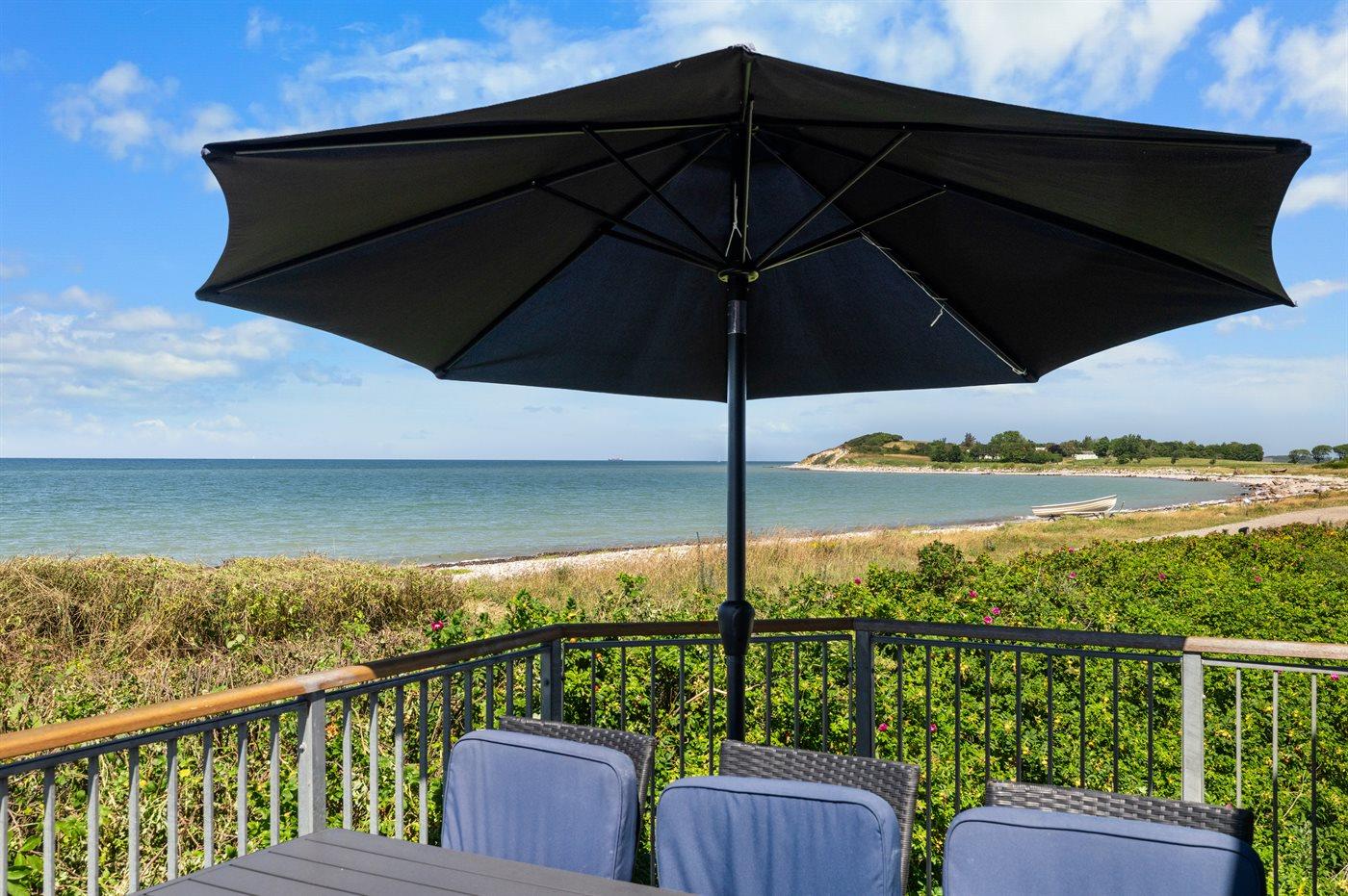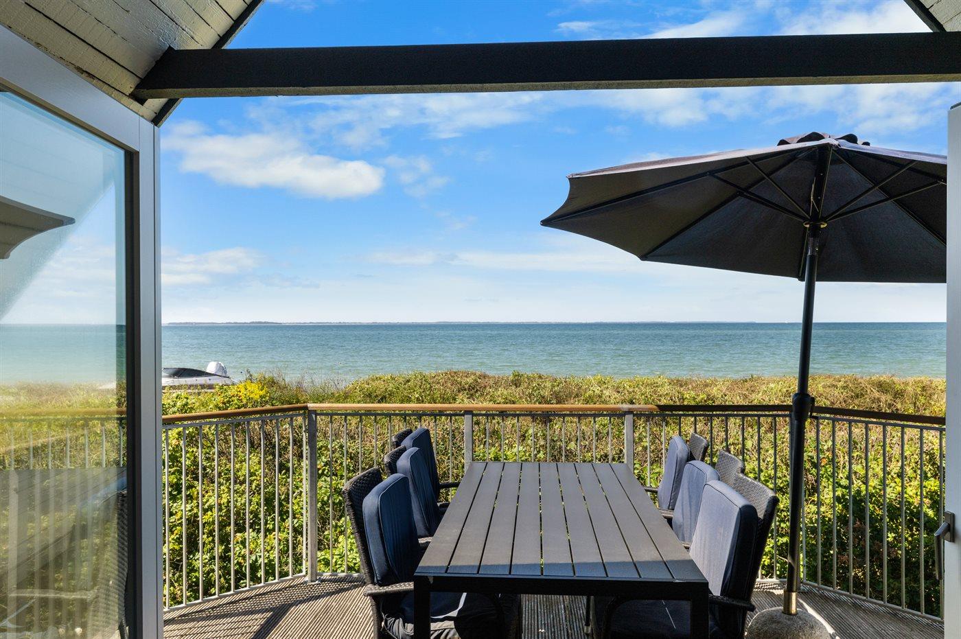 Gemütliches Ferienhaus in Martofte mit Meerblick, Balkon und großem Grundstück, nur 20 Meter vom Wasser entfernt.