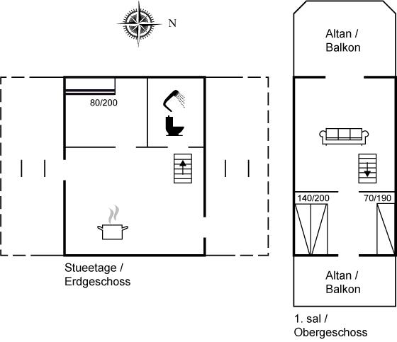 Das Ferienhaus eignet sich für 5 Personen. 1 Schlafplatz eignet sich jedoch nur für größere Kinder (4-11 Jahre). Die Ferienunterkunft hat eine Wohnfläche von 70 m², ist 2-stöckig, und wurde 1971 gebaut. 1995 wurde die Ferienunterkunft renoviert. Es ist erlaubt 2 Haustiere mitzubringen. Die Ferienunterkunft ist mit einer energiefreundlichen Luft-Luft-Wärmepumpe ausgestattet. Die Ferienunterkunft ist mit Waschmaschine ausgestattet. Tiefkühlmöglichkeit mit 50 Liter Nutzinhalt. Es gibt außerdem einen Kaminofen.
