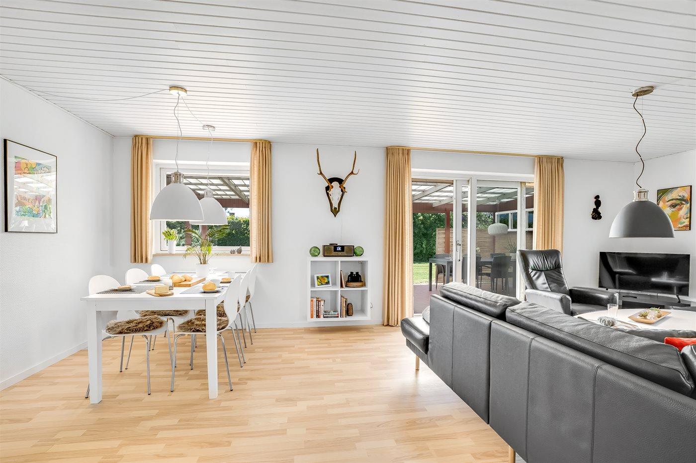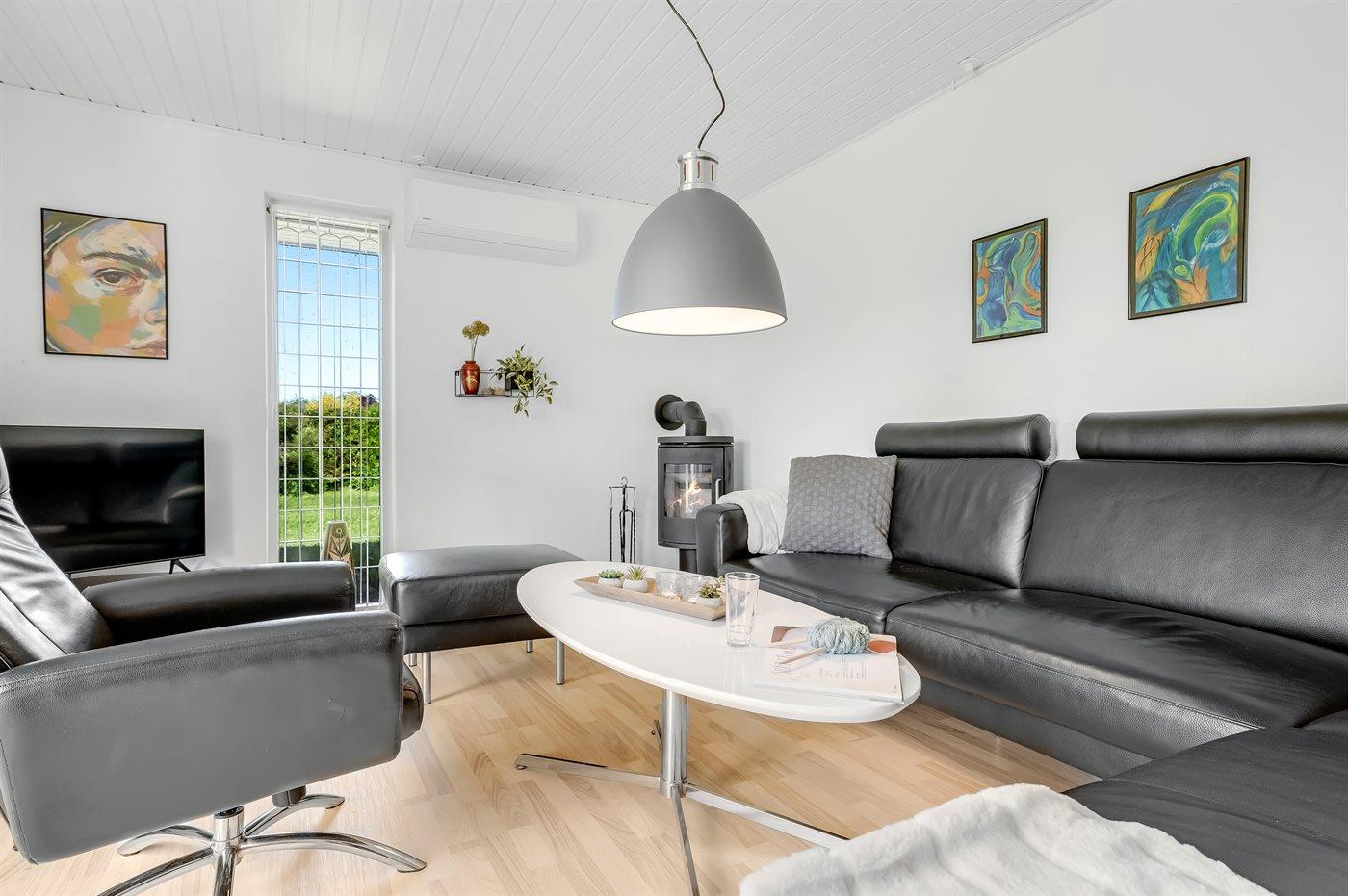 Die Ferienunterkunft liegt auf einem 1200 m² großen Gartengrundstück. Die Entfernung zum Meer beträgt 3000 m. Die Entfernung zum Fjord beträgt 150 m. Die nächste Einkaufsmöglichkeit liegt 9000 m entfernt. Es steht ein offenes Terrassenareal zur Verfügung. Außerdem gibt es überdachte Terrasse. Die Entfernung zu einem Spielplatz beträgt 700 m.Lagerfeuerstelle. Es steht ein Grill zur Verfügung.Es steht eine Garage zur Verfügung. Parkplatz auf dem Grundstück.