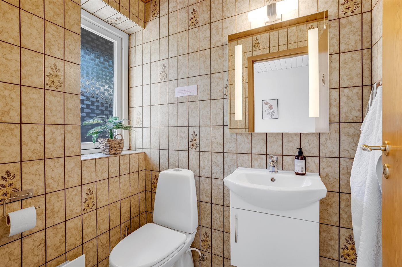 Es gibt 1 Badezimmer mit Duschnische und 2 Toiletten, davon 1 Gästetoilette. Fußbodenheizung in 1 Badezimmer.