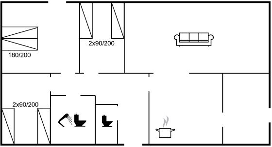 Die Schlafplätze verteilen sich auf 3 Schlafräume. 2 Schlafplätze in einem Doppelbett. 4 Schlafplätze in Einzelbetten.
