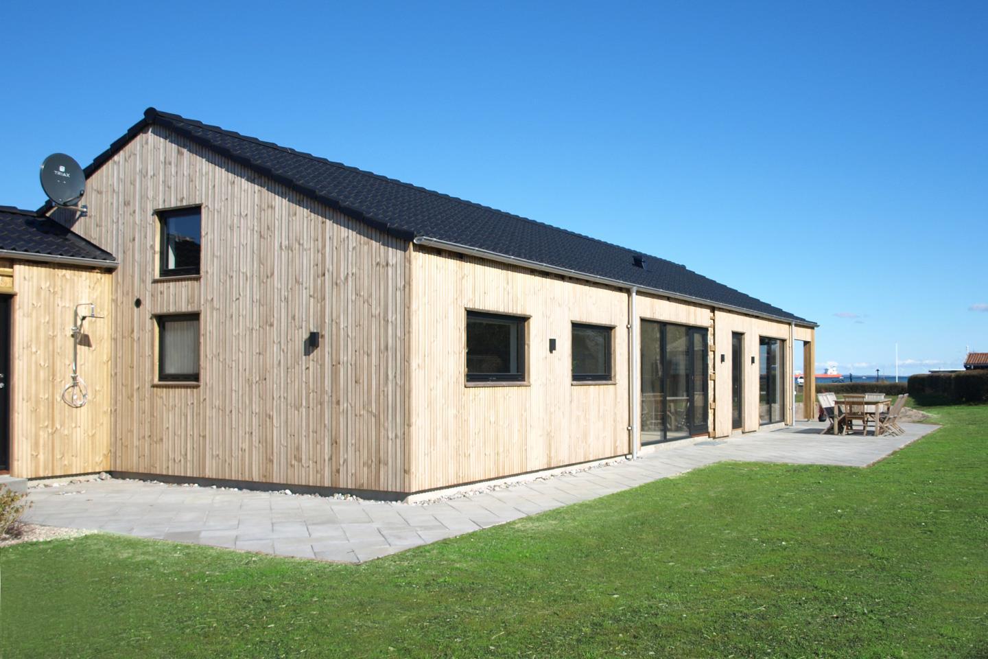 Modernes Ferienhaus mit Meerblick in erster Reihe am Langelandbelt, ideal für Naturliebhaber und Familienurlaub.