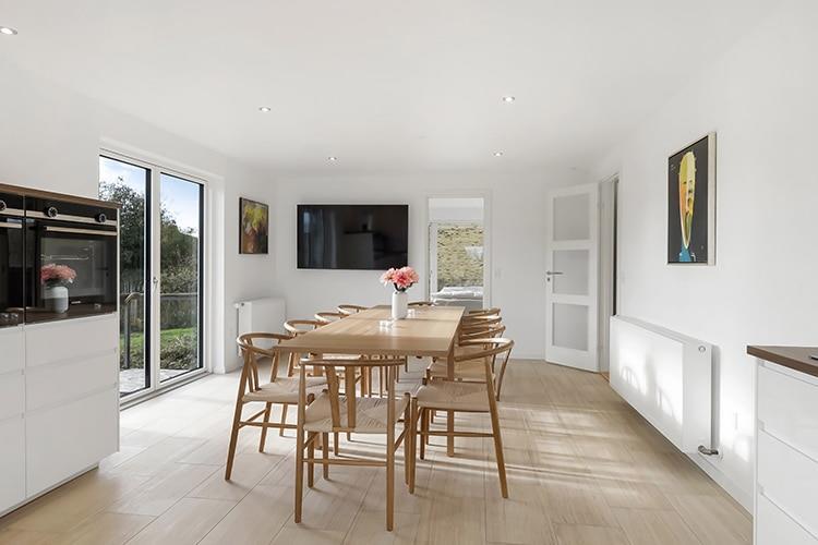 Dieses schöne, große Ferienhaus mit 180 m² bietet Meerblick und Platz für bis zu 12 Personen. Die moderne, weiße Küche ist mit Spülmaschine und Mikrowelle ausgestattet. Das Wohnzimmer mit Meerblick verfügt über einen Fernseher. Kostenloses Internet ist ebenfalls vorhanden.