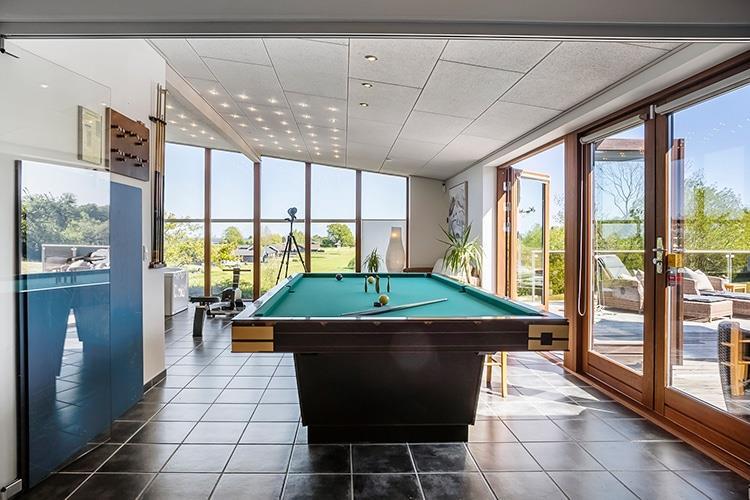 Her er et billardbord, så I måske i familien kan udfordre hinanden til en hygge-dyst. Fjernsyn med danske kanaler og gratis internet.