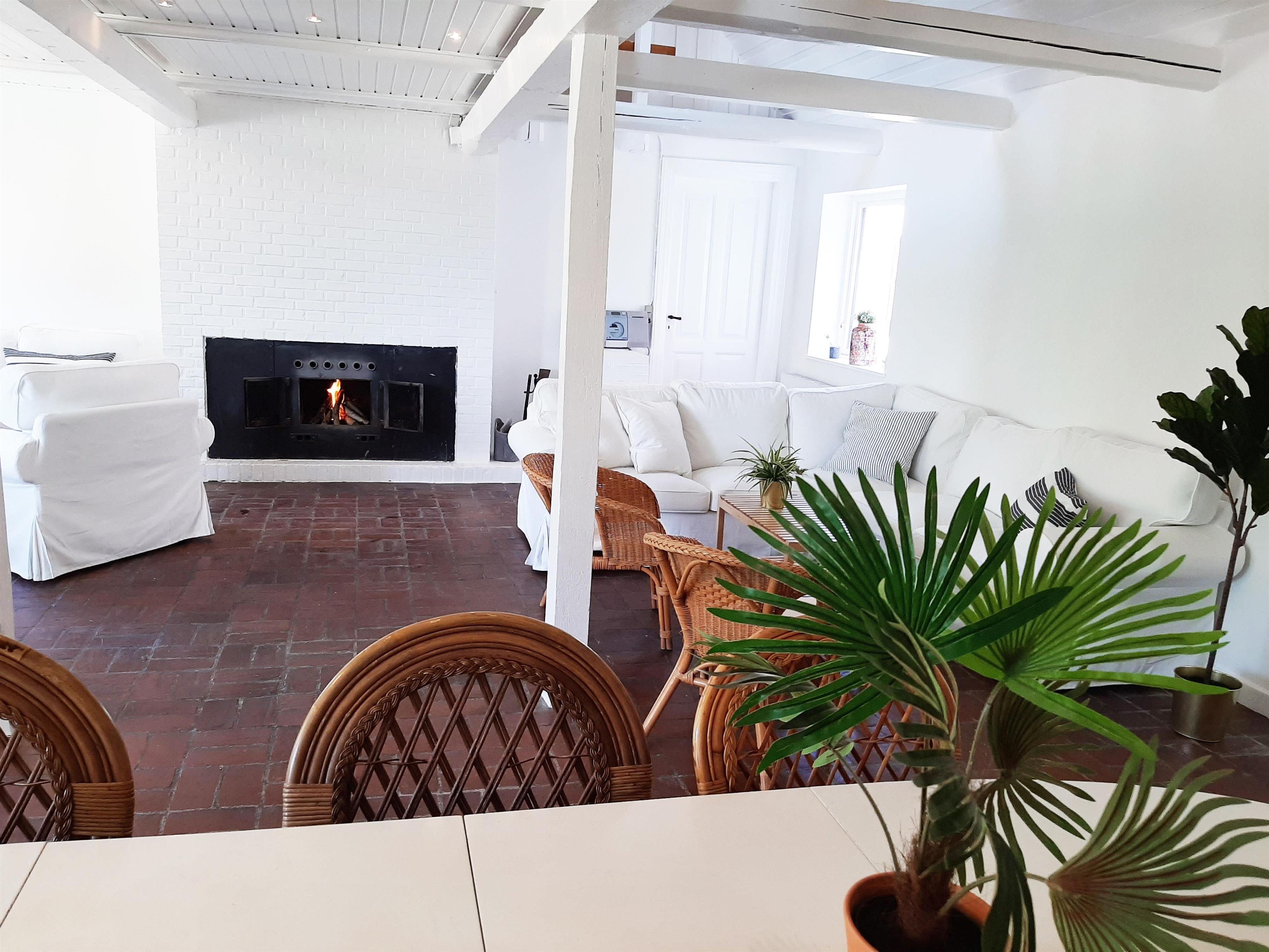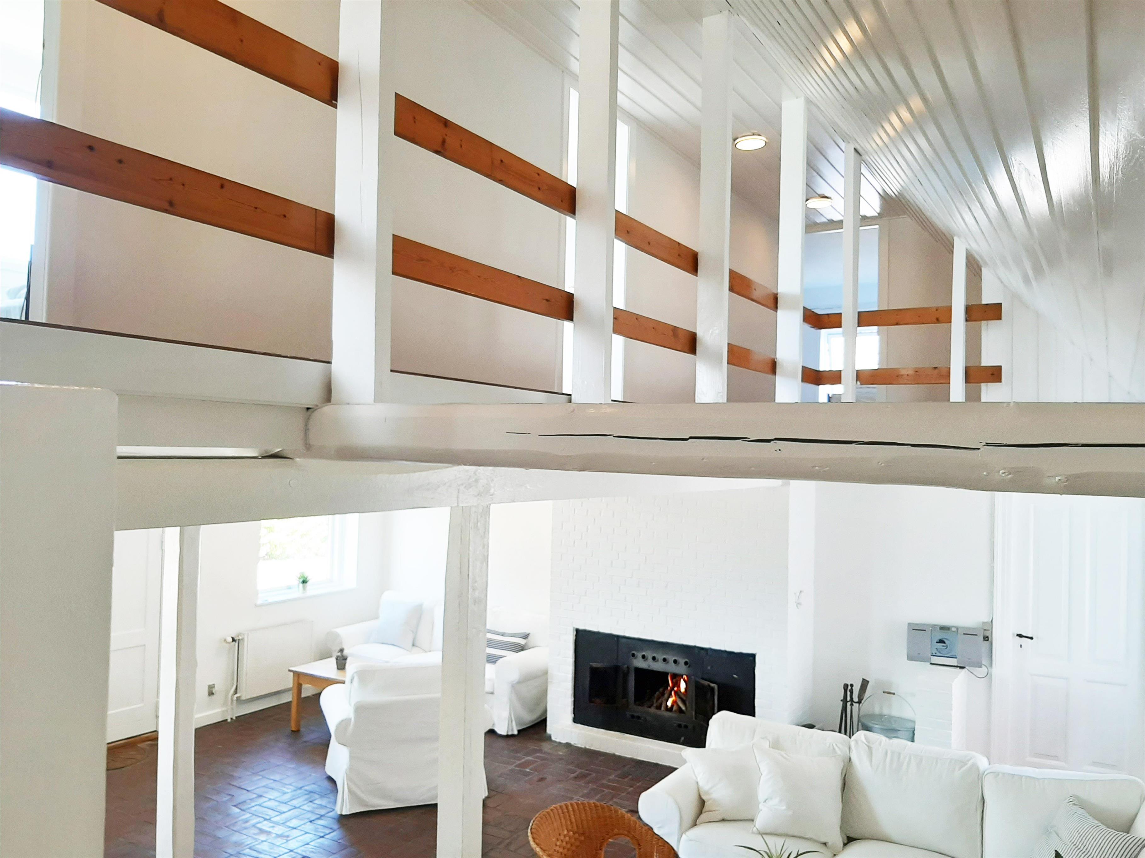 Das Erdgeschoss beherbergt darüber hinaus auch den großen Küchen- und Essbereich, in dem Sie im Kreise Ihrer Lieben die Mahlzeiten zubereiten, gemeinsam essen und vergnügliche Brettspiele an den großen Esstischen spielen können. Vier Badezimmer mit Fliesenböden und drei Schlafräume sind ebenfalls im Erdgeschoss platziert. Vom Wohnraum führt Sie eine Treppe in das obere Stockwerk, das mit weiteren vier Schlafräumen und einem langen Flur mit Blick hinunter auf den Kaminbereich besticht. Vom Küchen- und Essbereich führt eine weitere Treppe in das Obergeschoss. In diesem Bereich des ersten Stockes treffen Sie auf zwei Schlafräume, die Sie mit einem herrlichen Ausblick über die Landschaft und das Meer in der Ferne verwöhnen. Das von Feldern umgebene Ferienhaus liegt in ruhiger, idyllischer Umgebung, nur 500 Meter von einem schönen Strand entfernt.