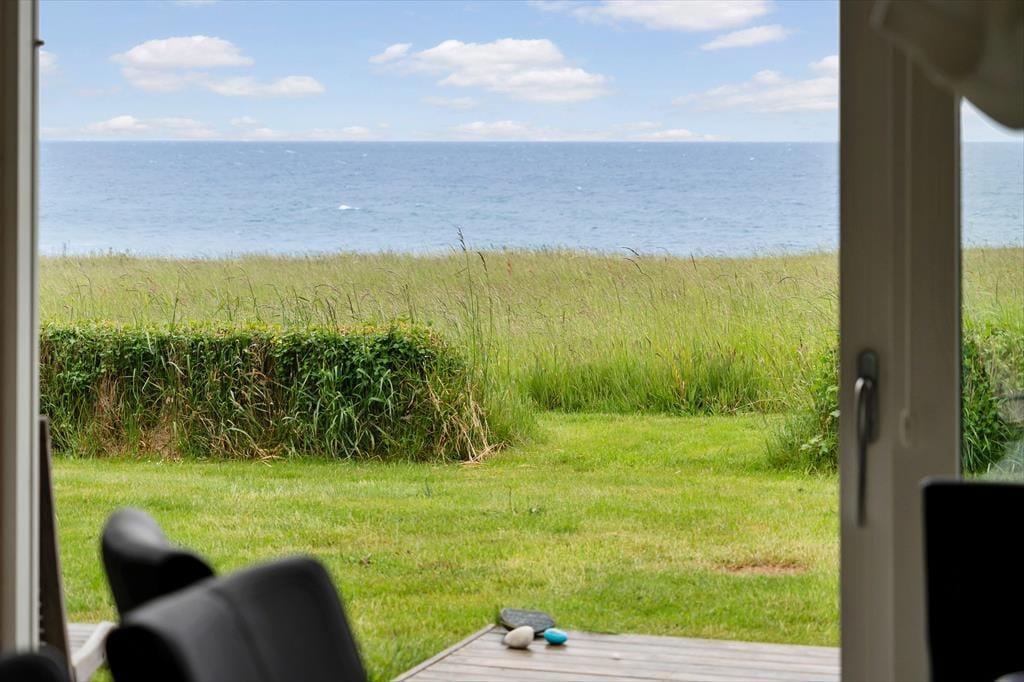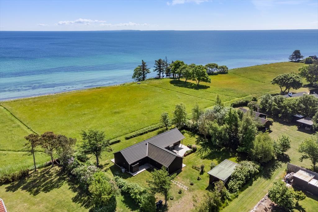 Dette sommerhus er indbegrebet af sommerhusidyl. De store vinduespartier åbner sig op mod det endeløse blå hav, og sollyset inviteres indenfor hele dagen. Du finder næppe en mere spektakulær udsigt end denne. Forestil dig at nyde måltider med dine nærmeste, mens I har panoramaudsigt over det glitrende vand – og mærk, hvordan stemning og ro smelter sammen.
