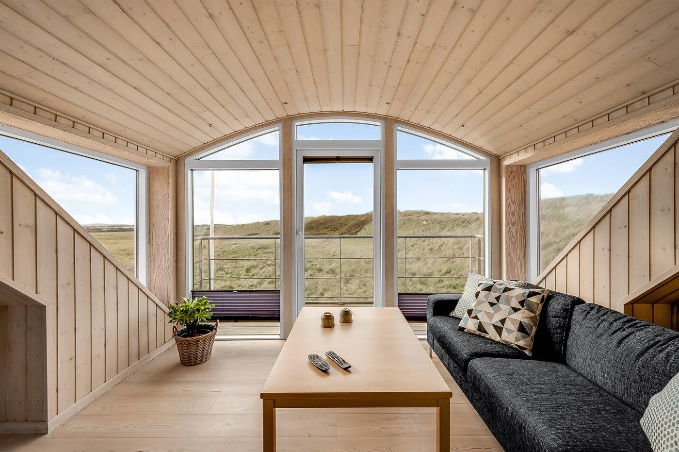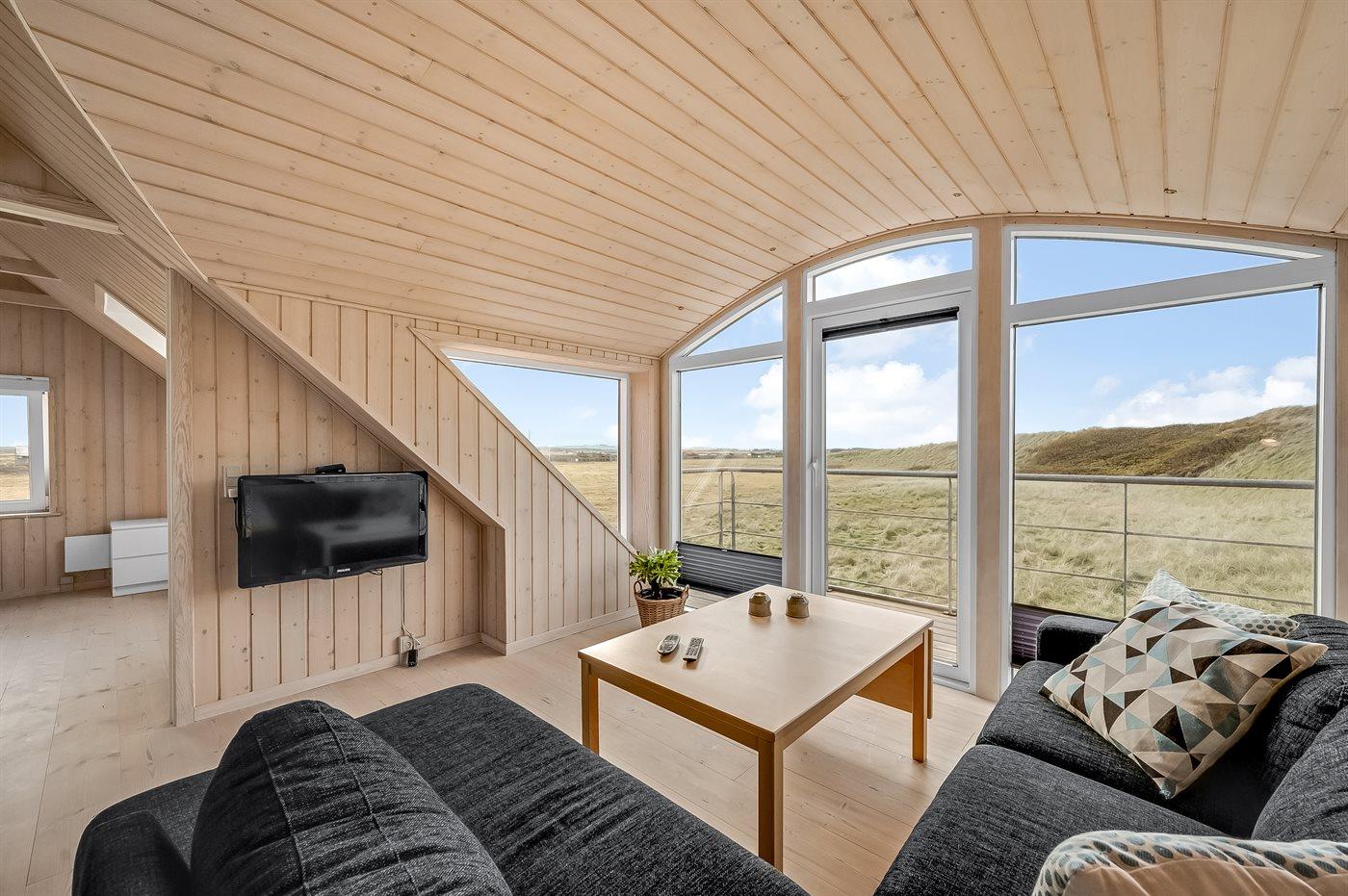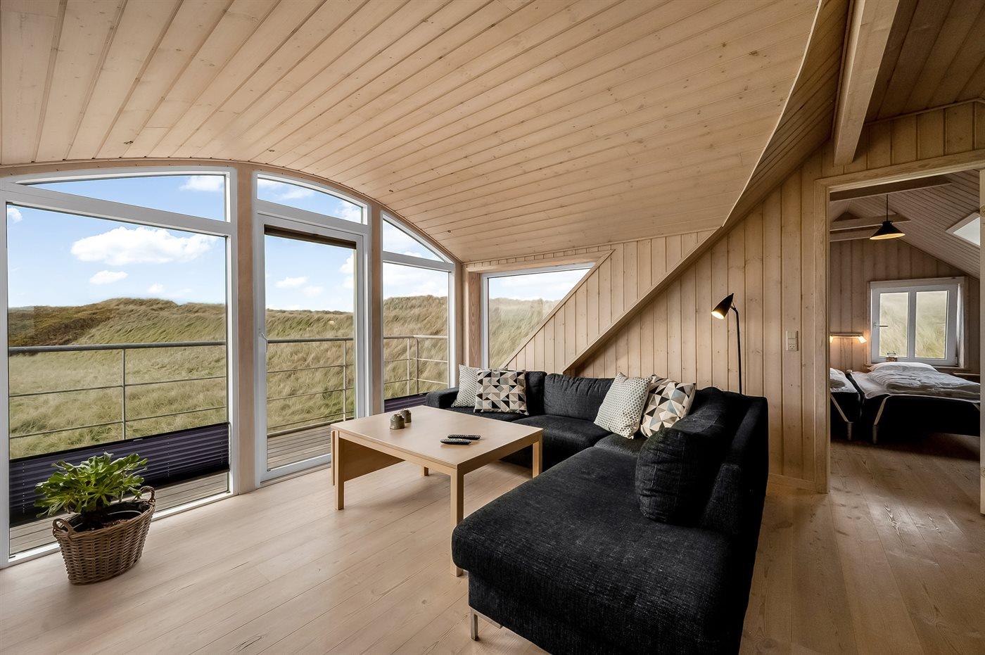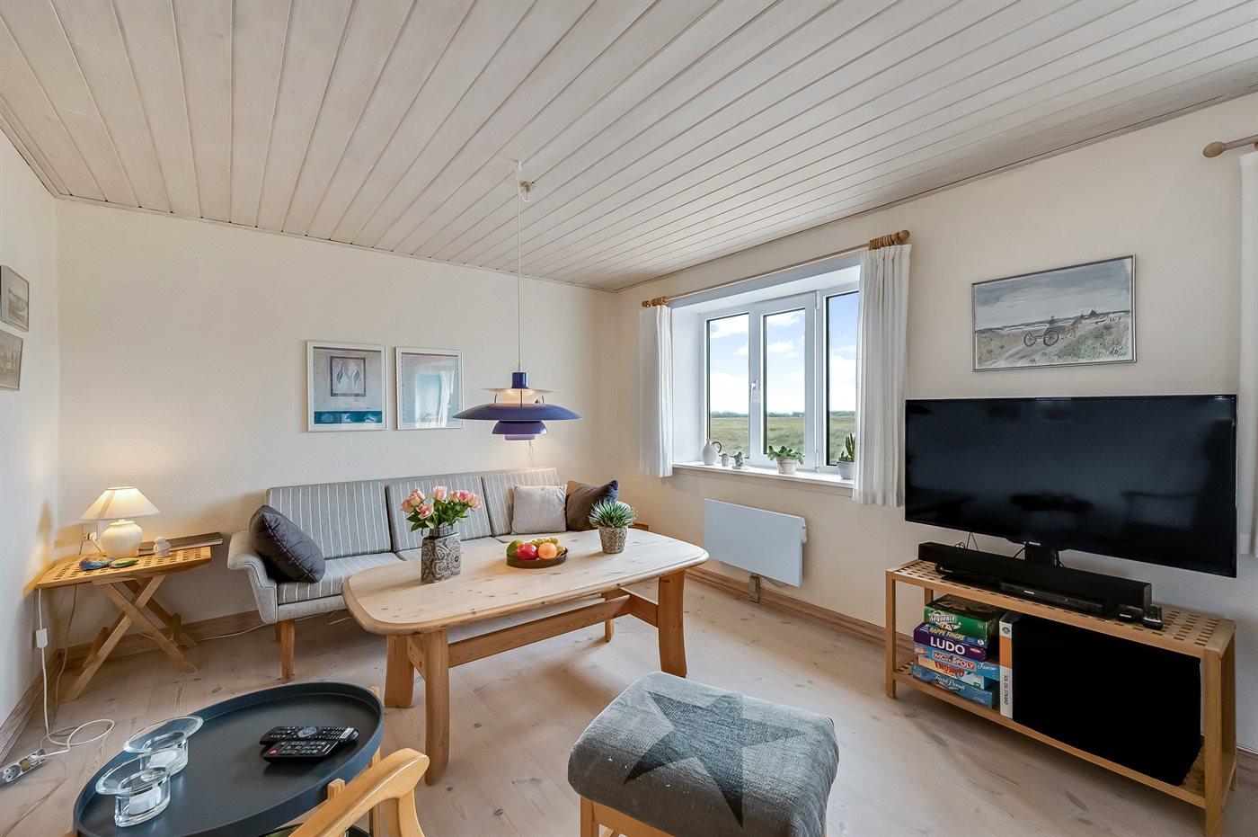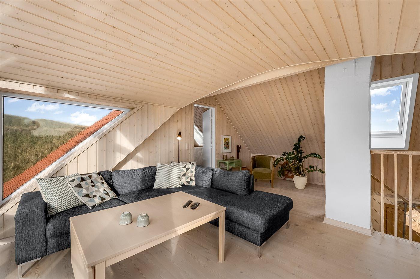 Dieses schöne und geräumige Ferienhaus liegt in der ersten Reihe zum Wasser, direkt hinter den hohen Dünen zum Strand und zur Nordsee. Das Haus liegt am Ende der Sackgasse in der ruhigen und landschaftlich reizvollen Gegend von Langerhuse, unmittelbar in der Nähe des Limfjordes. Das Haus ist liebevoll renoviert und gepflegt, mit einem hellen und gemütlichen Dekor und vom Wohnzimmer im ersten Stock gibt es einen schönen Blick auf die Umgebung, sowie Zugang zum Südbalkon. Zum Haus gehören mehrere schöne Terrassen, wo Sie sowohl Sonne als auch Schutz finden können.Die Treppe auf dem Grundstück führt durch die Dünen und direkt hinunter zum Strand und zum Meer.