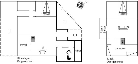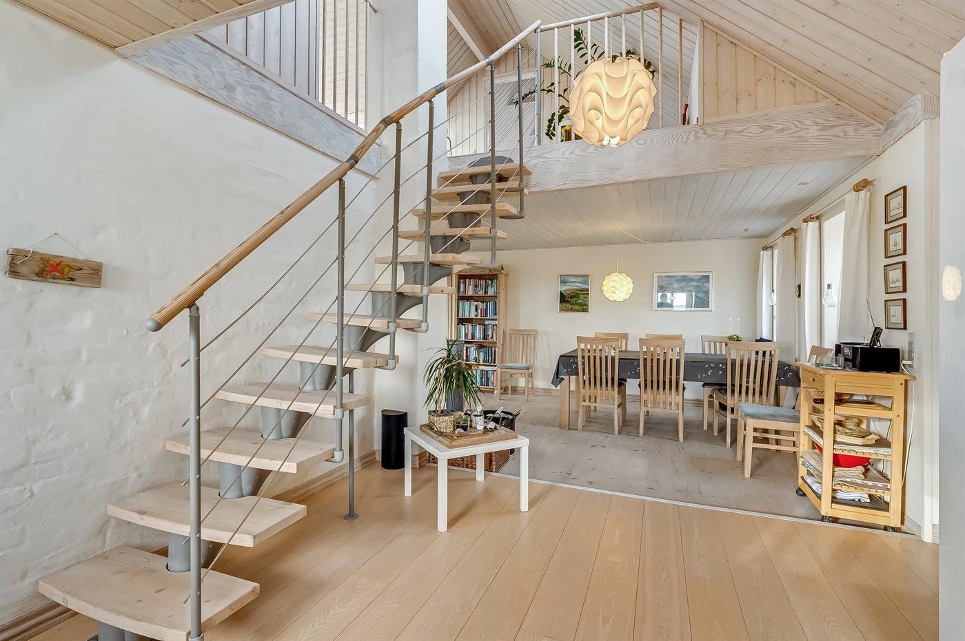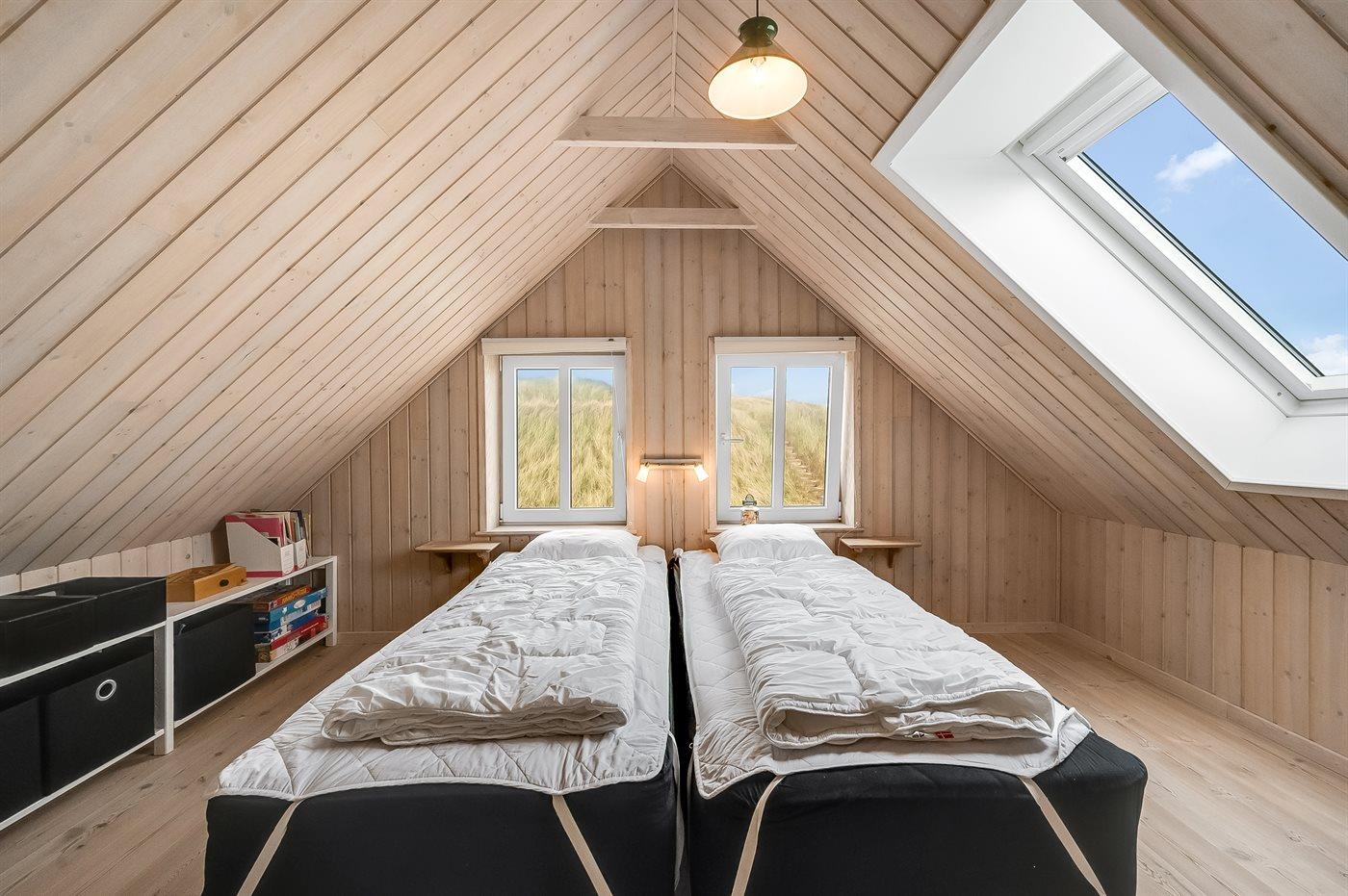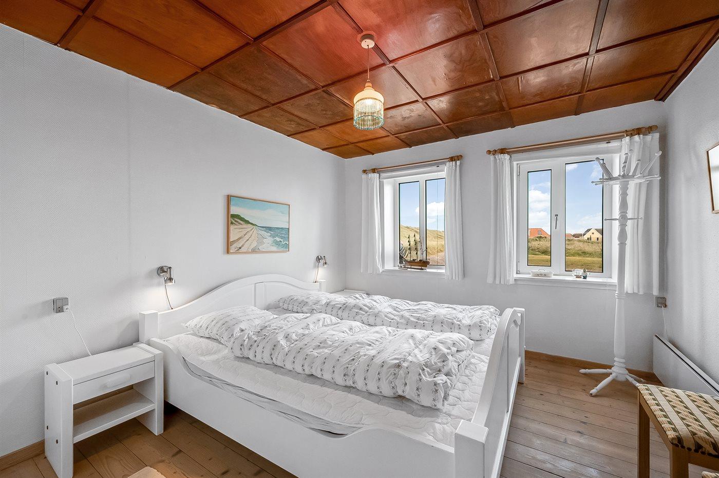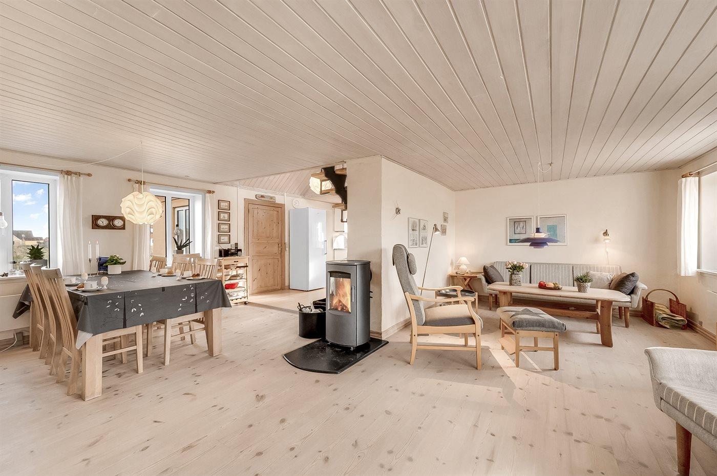Dieses schöne und geräumige Ferienhaus liegt in der ersten Reihe zum Wasser, direkt hinter den hohen Dünen zum Strand und zur Nordsee. Das Haus liegt am Ende der Sackgasse in der ruhigen und landschaftlich reizvollen Gegend von Langerhuse, unmittelbar in der Nähe des Limfjordes. Das Haus ist liebevoll renoviert und gepflegt, mit einem hellen und gemütlichen Dekor und vom Wohnzimmer im ersten Stock gibt es einen schönen Blick auf die Umgebung, sowie Zugang zum Südbalkon. Zum Haus gehören mehrere schöne Terrassen, wo Sie sowohl Sonne als auch Schutz finden können.Die Treppe auf dem Grundstück führt durch die Dünen und direkt hinunter zum Strand und zum Meer.