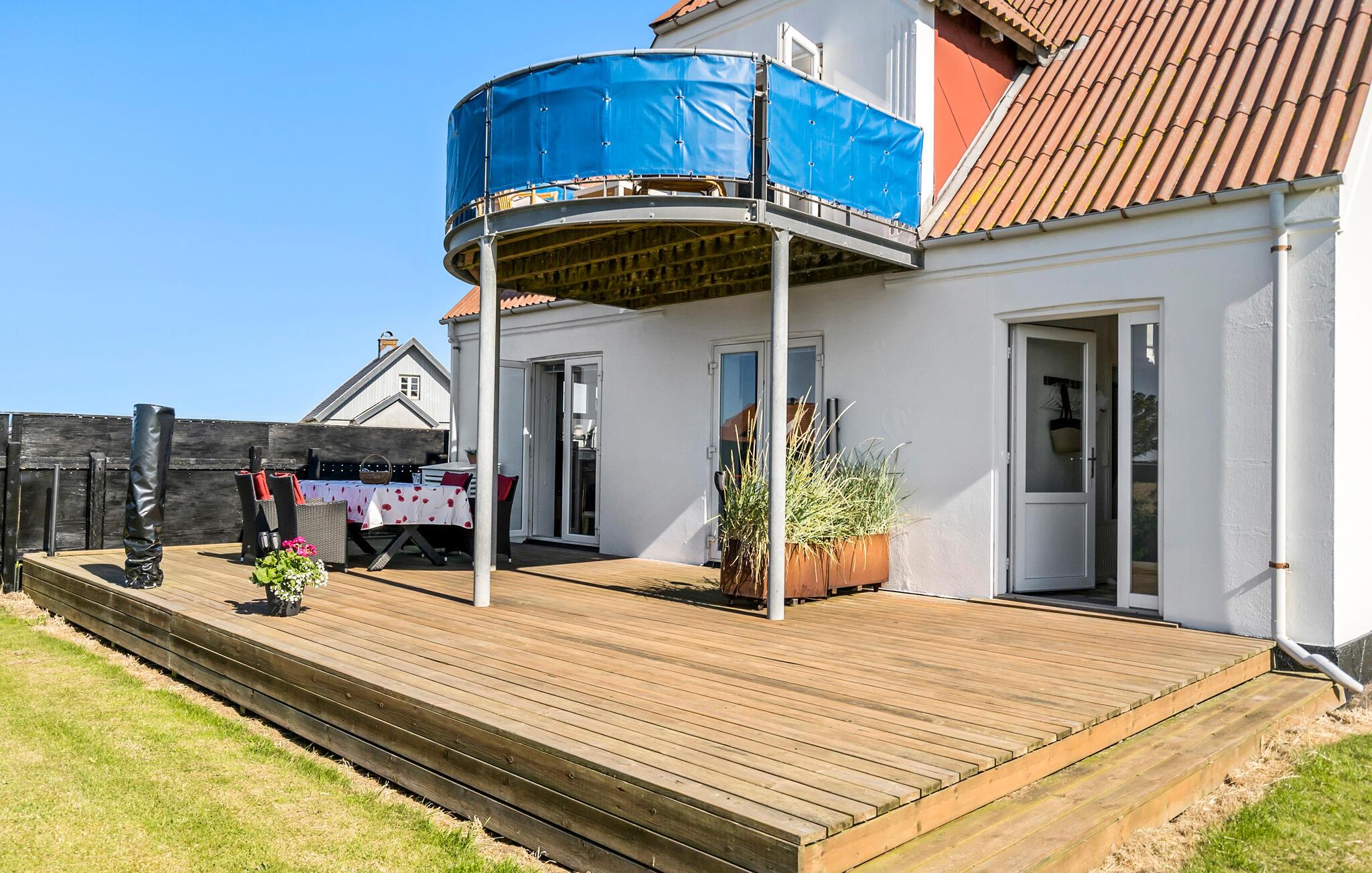 Ihr Ferienhaus begeistert mit einer gemütlichen Einrichtung und einem großzügigen Außenbereich. Die Terrasse ist der ideale Ort, um den Tag mit einem Frühstück an der frischen Meeresluft zu beginnen oder den Abend bei einem leckeren Abendessen ausklingen zu lassen. Nutzen Sie auch den Balkon, um die weite Aussicht auf die Landschaft zu genießen und einfach mal abzuschalten.