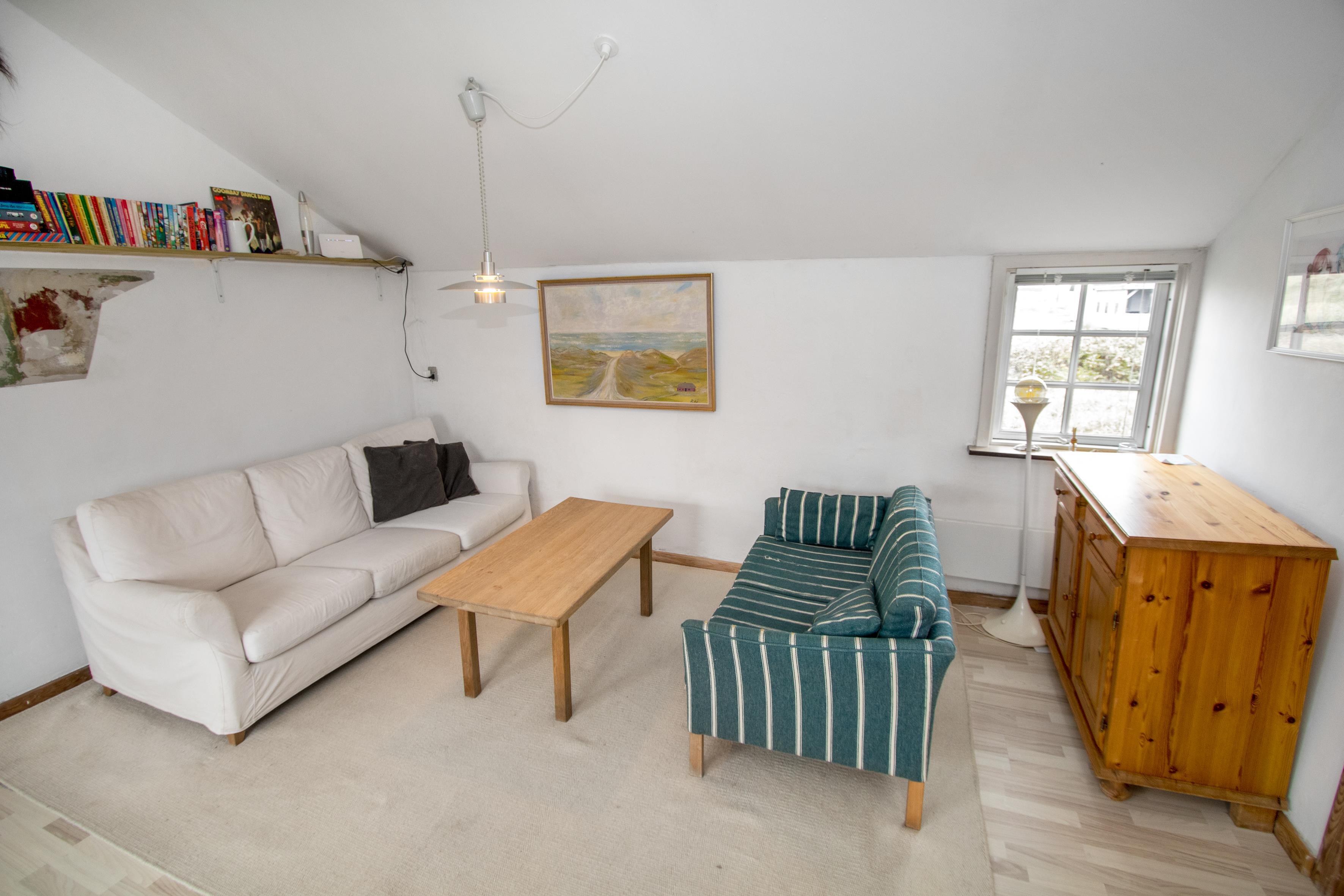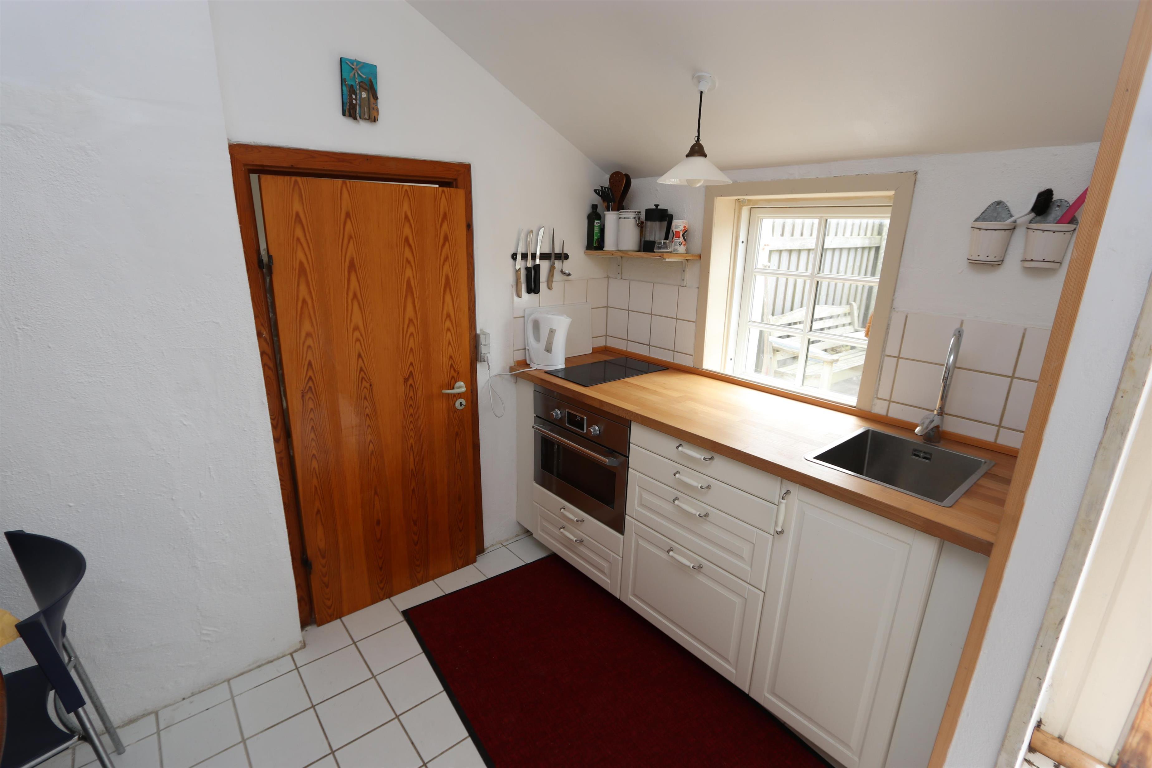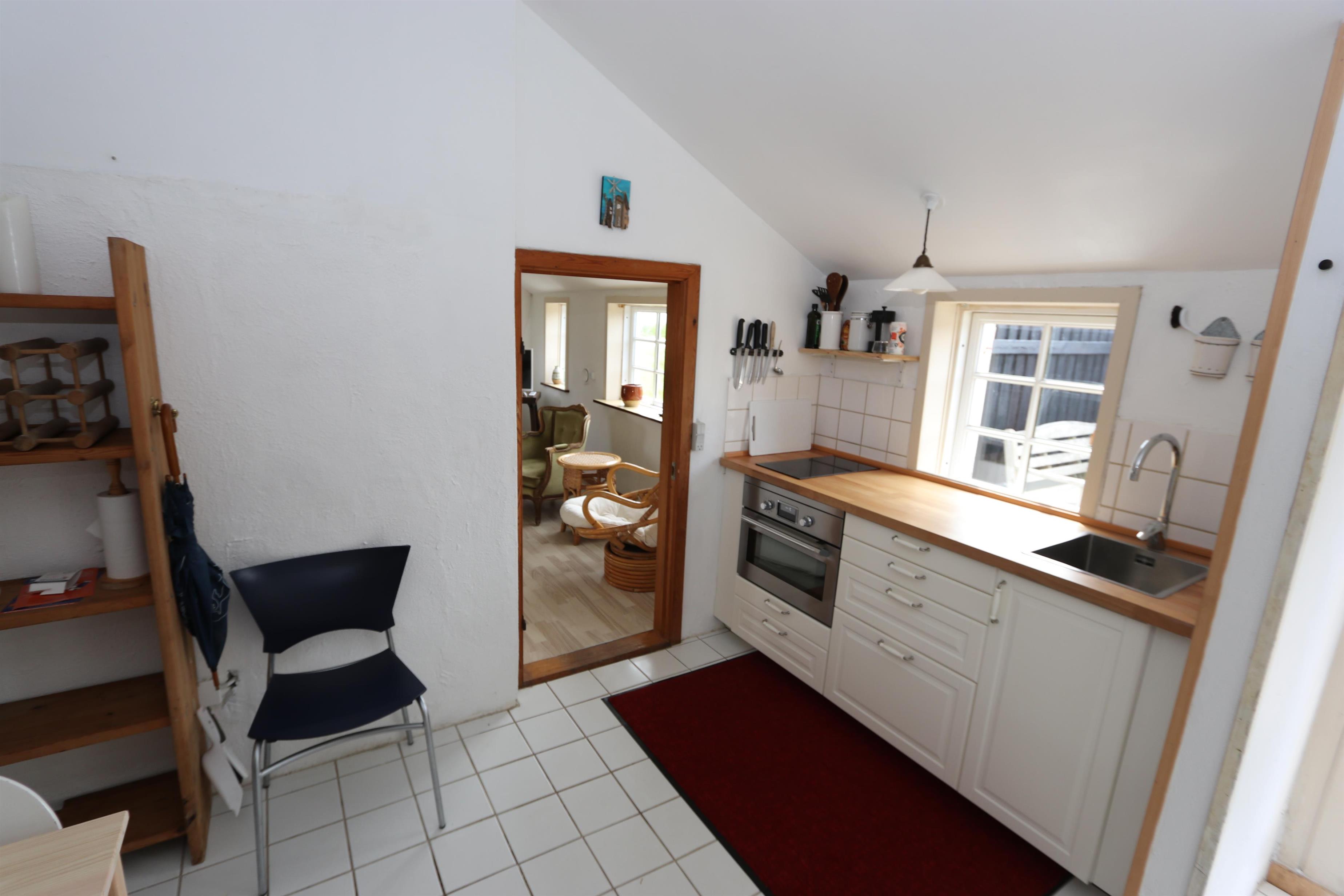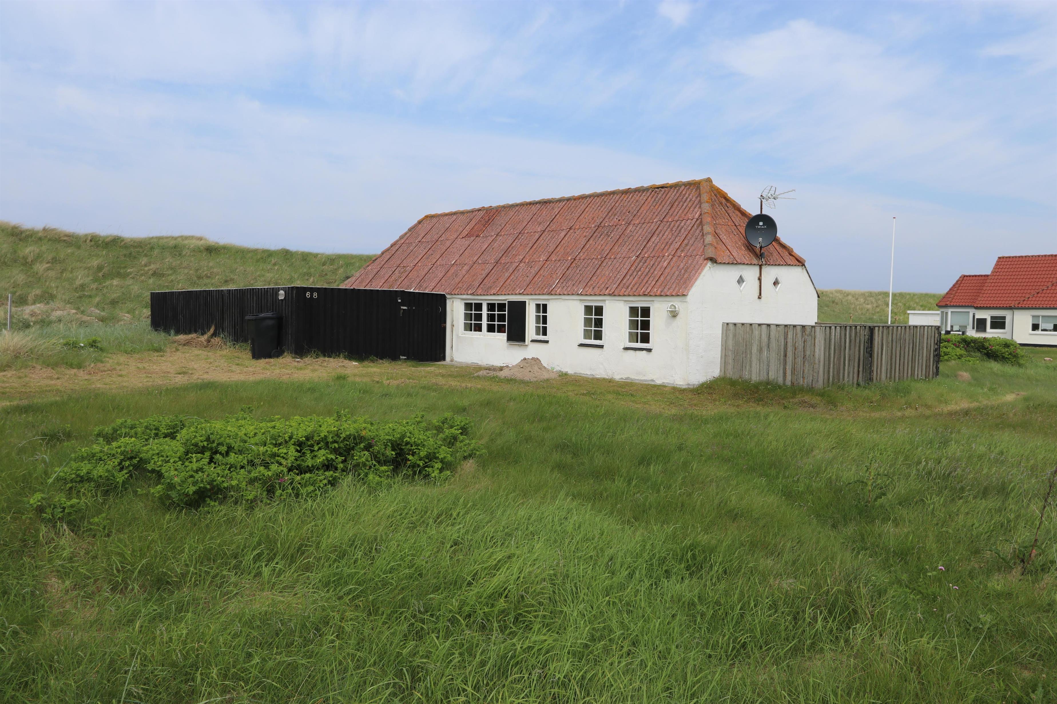 Alte Dünenfarm mit 2 Schlafzimmern (1DB, 1DB). Schönes neu renoviertes Badezimmer mit Dusche, Toilette, Waschbecken und Fliesenboden. Gemütliches Wohnzimmer mit Holzboden und älteren Polstermöbeln. Fernsehen mit dänischen und deutschen Programmen und Heizungen für die kalten Abende. Neue Küche mit Fliesenboden, Essbereich, Keramikkochfeldern, Dunstabzugshaube, Kombibackofen und Kühlschrank mit kleinem Gefrierschrank. Die Deckenhöhe im Haus beträgt max. 1,90 m. Nichtraucherhaus. 2 Haustiere erlaubt.