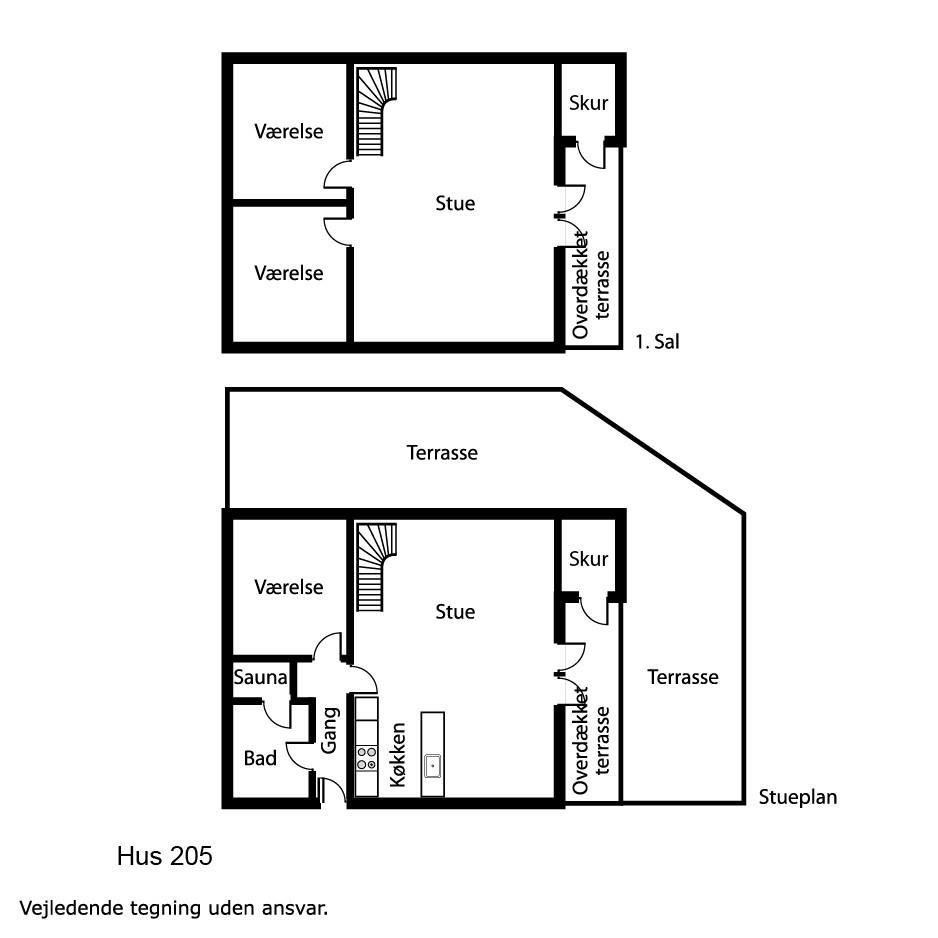 Das Haus ist sehr gut eingerichtet mit schönen Möbeln, Holzböden und hellen Wänden. Die Küche und der Wohnraum sind in einem Raum. Hier gibt es Esstisch, Sofagruppe, Kaminofen und Radio mit CD-Spieler. Die Küche ist mit Herd mit Cerankochfeld, Mikrowelle, Kühl-/Gefrierschrank und Geschirrspüler ausgestattet. Im 1. Stock gibt es noch einen Wohnraum mit Möbeln und TV wo Sie DR1 und TV2 und deutsche Programme sehen können. Es gibt ausserdem einen DVD-Spieler. Von hier haben Sie auch Zugang zum Westbalkon. Das Badezimmer liegt im Parterre und hier gibt es Fussbodenheizung, Dusche, Waschbecken und Toilette. Hier haben Sie auch den Zutritt zur Sauna des Hauses. Das Haus hat 3 Schlafräume: 1DB + 1DB + 1DB. Der eine Schlafraum ist im Parterre und die 2 anderen sind im 1. Stock. Ausserdem verfügt das Haus über eine Waschmaschine und Trockner. Nichtraucher-haus. Max 2 Haustiere erlaubt.
