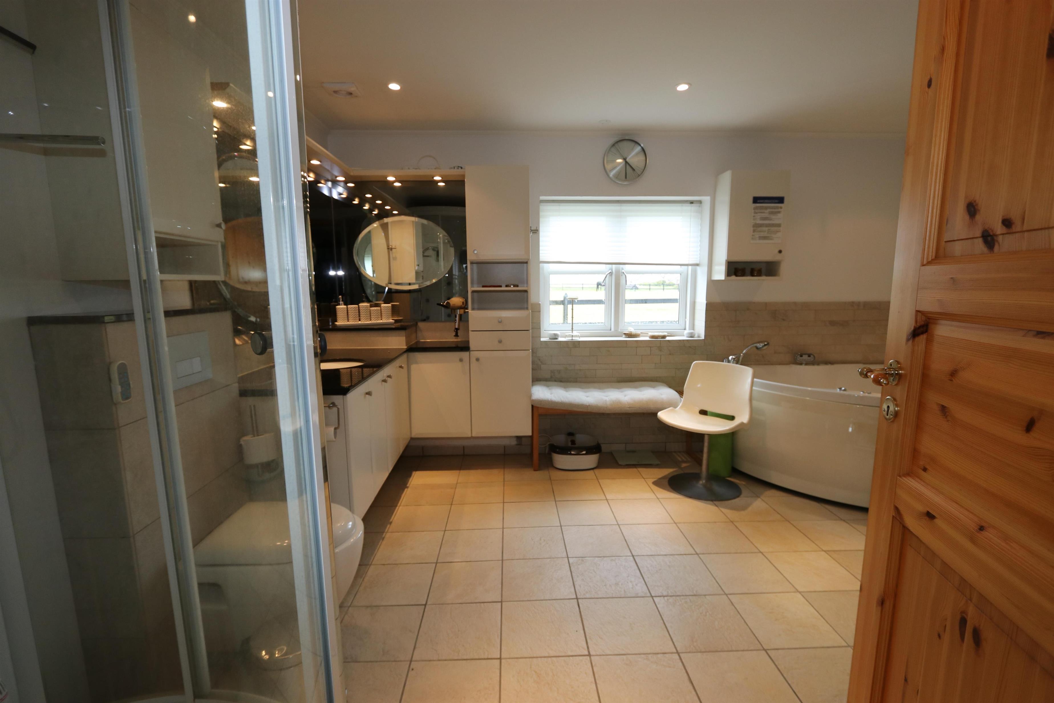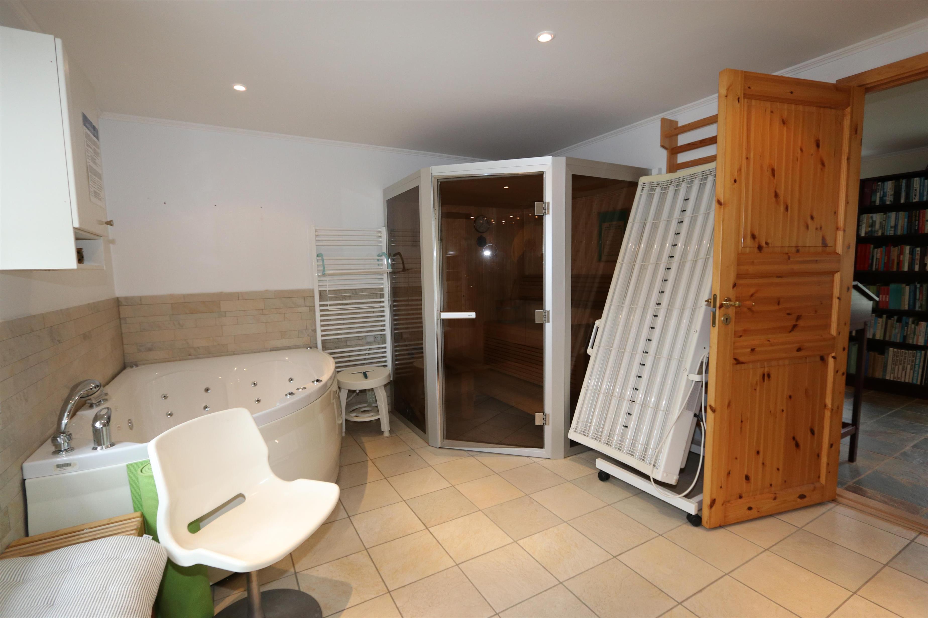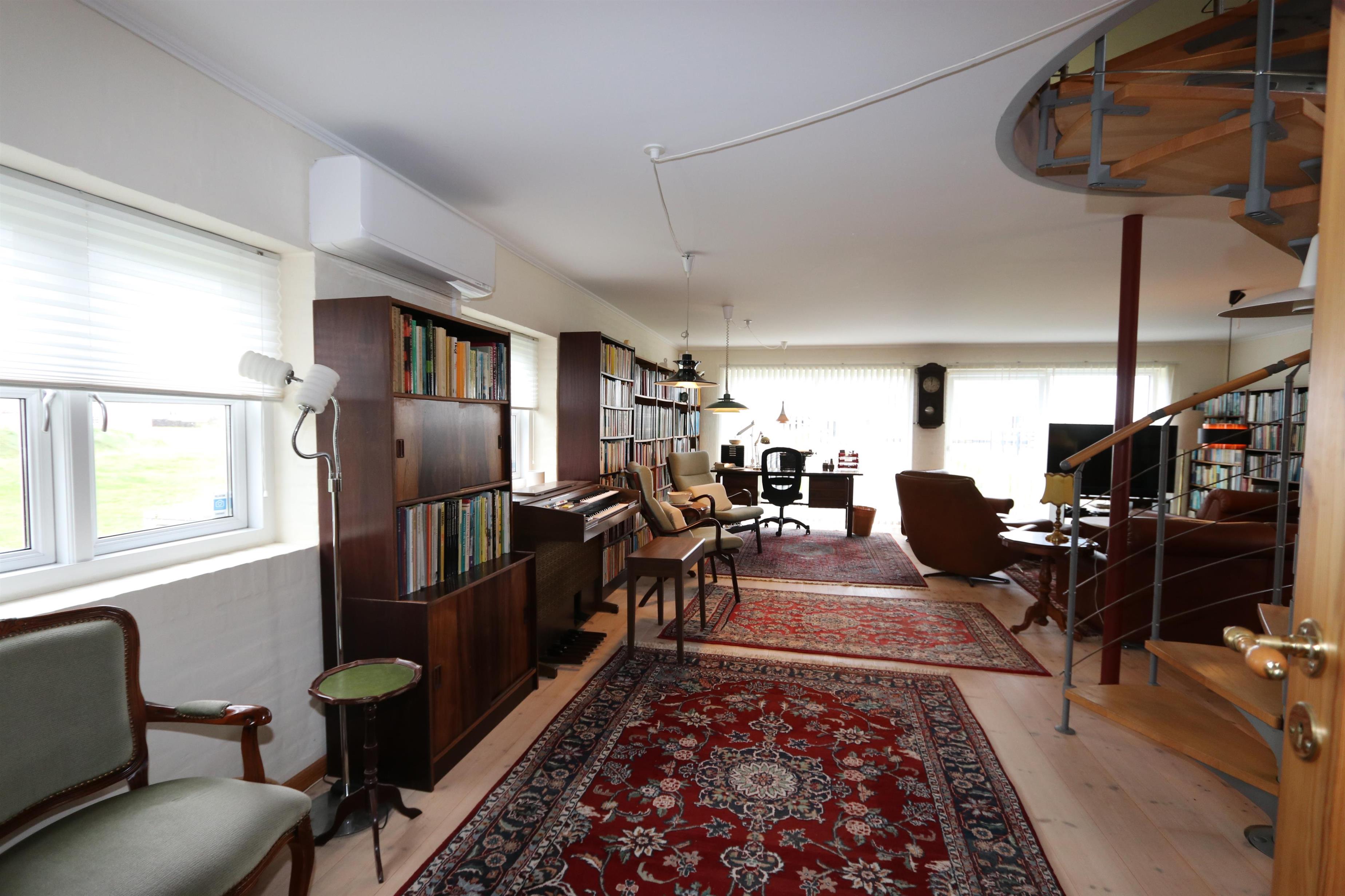 Das Haus wurde im Jahr 1877 erbaut, in 2016 renoviert und durch Anbauten vergrößert. Ein Flur heißt Sie willkommen. Hier gibt es viel Platz zum Aufhängen von Garderobe und es gibt hier auch die Möglichkeit, Tischfußball zu spielen. Der Flur ist auch ein Verteilerflur; von hier gibt es Zugang zum großen Badezimmer, Wohnraum und Küche. In der Küche gibt es ein extra Waschbecken, Waschmaschine und Trockner. In demselben Haus gibt es auch ein Extrabadezimmer mit Toilette, Bad und Waschbecken. Dieses Badezimmer hat auch direkten Zugang zu dem Schlafraum mit 1DB (Elevationsbett) und TV. Es gibt auch noch einen Schlafraum mit 1DB und extra TV. Offene Küche mit Ceranfeld Kochplatten, eingebautem Ofen mit Pyrolyse-Programm, Mikrowelle, Geschirrspüler, Abzugshaube, Kühlschrank, Gefrierschrank mit 170 l und kleinem Tisch mit 2 Sitzplätzen. Großer Wohnraum mit großem Esstisch, großem TV mit dänischen und deutschen Programmen und Chesterfield Möbeln. Vom Flur gibt es auch Zugang zu einem großen Badezimmer mit Toilette, Wachbecken, Dampfkabine, direkten Zugang zur Glassauna, Whirlpool für 2 Personen und einen Fliesenboden mit Fußbodenheizung. Von dem großen, mit Ledermöbeln und vielen anderen persönlichen Möbeln und Gegenständen und Fußbodenheizung ausgestatteten Wohnraum, gelangen Sie über eine Wendeltreppe in den 1. Stock. Das Haus ist gut isoliert und hat 2 Wärmepumpen, die für eine energiefreundliche Wärme sorgen; der Kaminofen im Wohnraum sorgt für eine gemütliche Wärme. Das Haus ist sehr persönlich eingerichtet. Es gibt z.B. viele Regale mit Büchern und mehreren Antiquitäten und andere schöne Möbel im Haus. Insgesamt gibt es 6 TV´s mit DVD im Haus und 5 Chromecast. Ein Kinderstuhl und Kinderbett sind vorhanden. Nichtraucher-Haus. 2 Haustiere sind erlaubt.