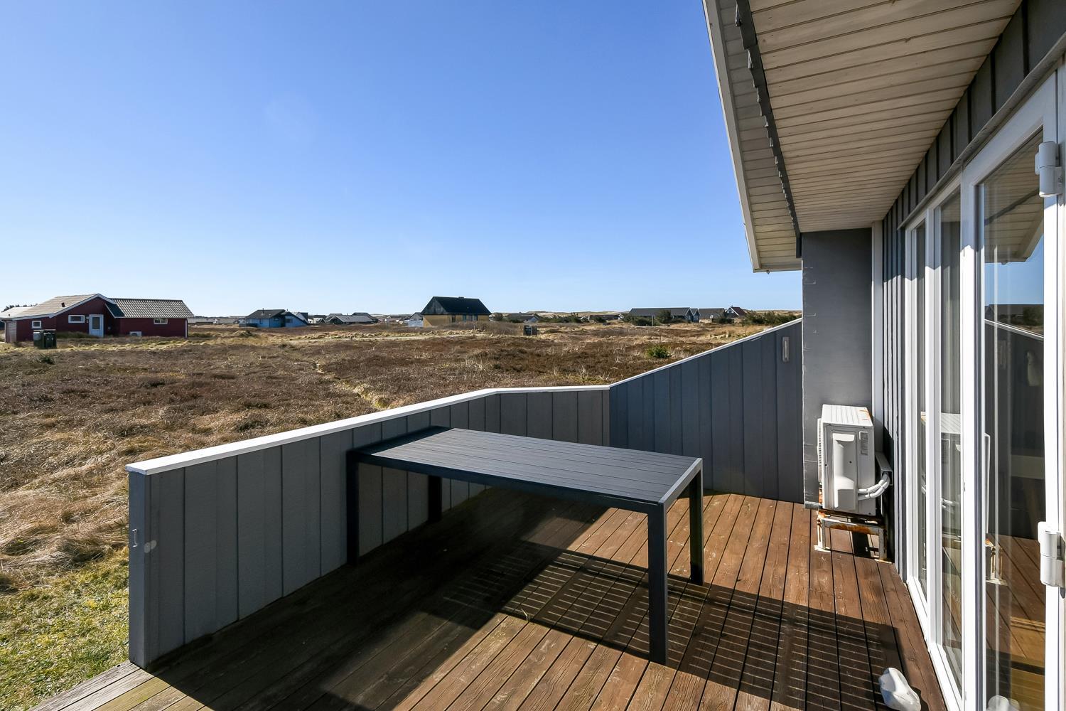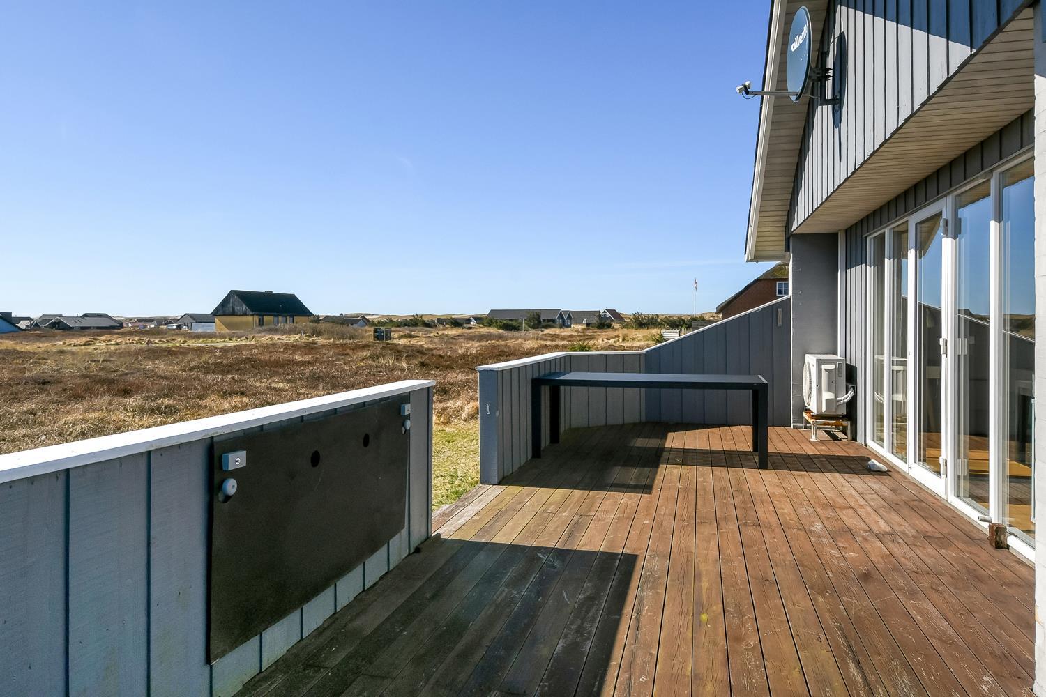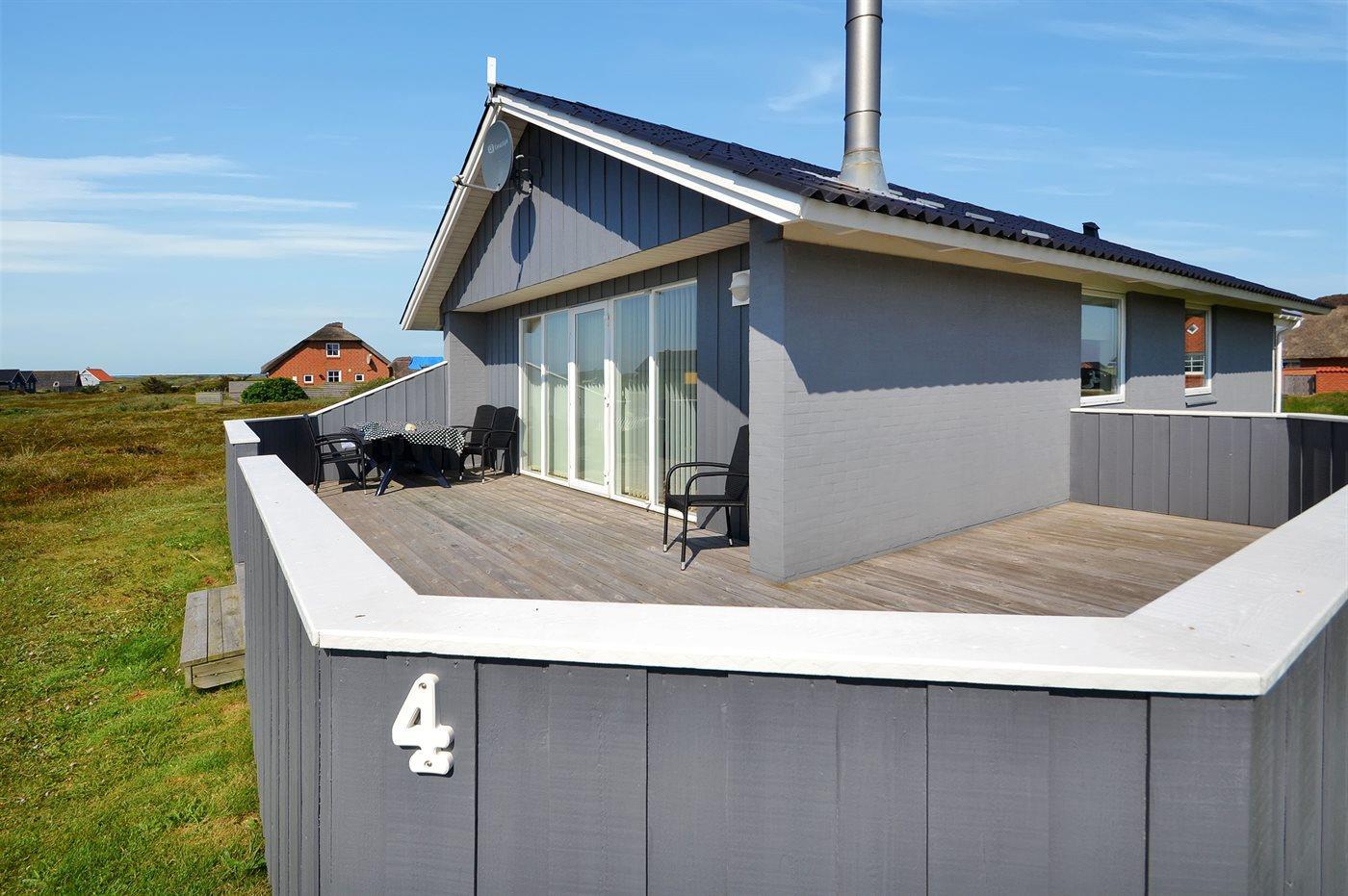 Vom Wohnraum gibt es einen Ausgang zu einer schönen, großzügigen und eingezäunten Terrasse mit Gartenmöbeln, Sonnenliegen und Grill. Carport und extra Raum zum Aufbewahren. Ein sehr schönes Ferienhaus in perfekter Lage auf einem schönen Naturgrundstück dicht an der einmaligen Nordsee, die täglich einen Besuch wert ist, egal ob es sonnig oder windig ist. Nehmen Sie das Auto oder das Fahrrad und holen Sie die Brötchen für die Familie in einem der Supermärkte, die ganz in der Nähe sind. Möchten Sie einen entspannten oder auch einen aktiven Urlaub, dieses Haus ist mit Lage, Ausstattung und Umgebung eine gute Wahl.